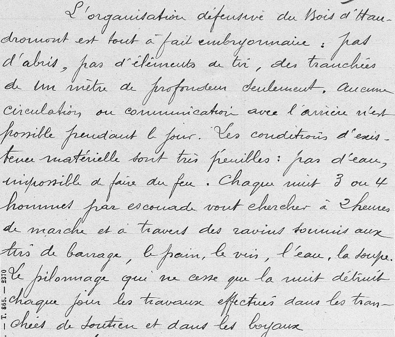 texte sur l’organsiation des tranchées