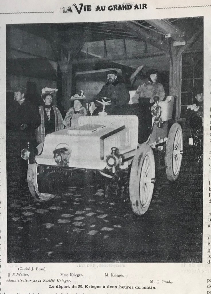 Une électrolette Krieger qu’on qualifierait de tacot à la première vision…et le journal en question n’était pas l’Automobile mais la revue de sports de l’époque…