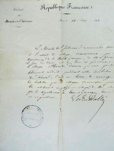 Voici une lettre un peu étrange reçue par Alexandre Dumon ! Elle est partie de Versailles le 5 avril 1871. L’auteur en est un député de l’Assemblée Nationale issue des urnes le 8 février de cette même terrible année. Les députés ont commencé à se réunir à Bordeaux, au Grand Théâtre le 13 février en attendant que le conflit avec la Prusse soit terminé puis ils se sont installés à Versailles le 10 mars, faute de pouvoir rejoindre Paris aux mains de Communeux. D’ailleurs, l’auteur de cette missive parle de la situation de guerre civile en commençant par ses mots: Au milieu des circonstances si graves qui nous préoccupent…