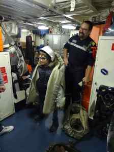 A Sète à l’occasion de la Fête de la Mer, on a pu visiter ce bateau de guerre. Florian, le tonton de Sophia nous a reçu et nous a servi de guide. On retrouve quelques similitudes avec la péniche des Catalins… mais c’est la Marine, c’est un navire de guerre et c’est un bateau de mer !