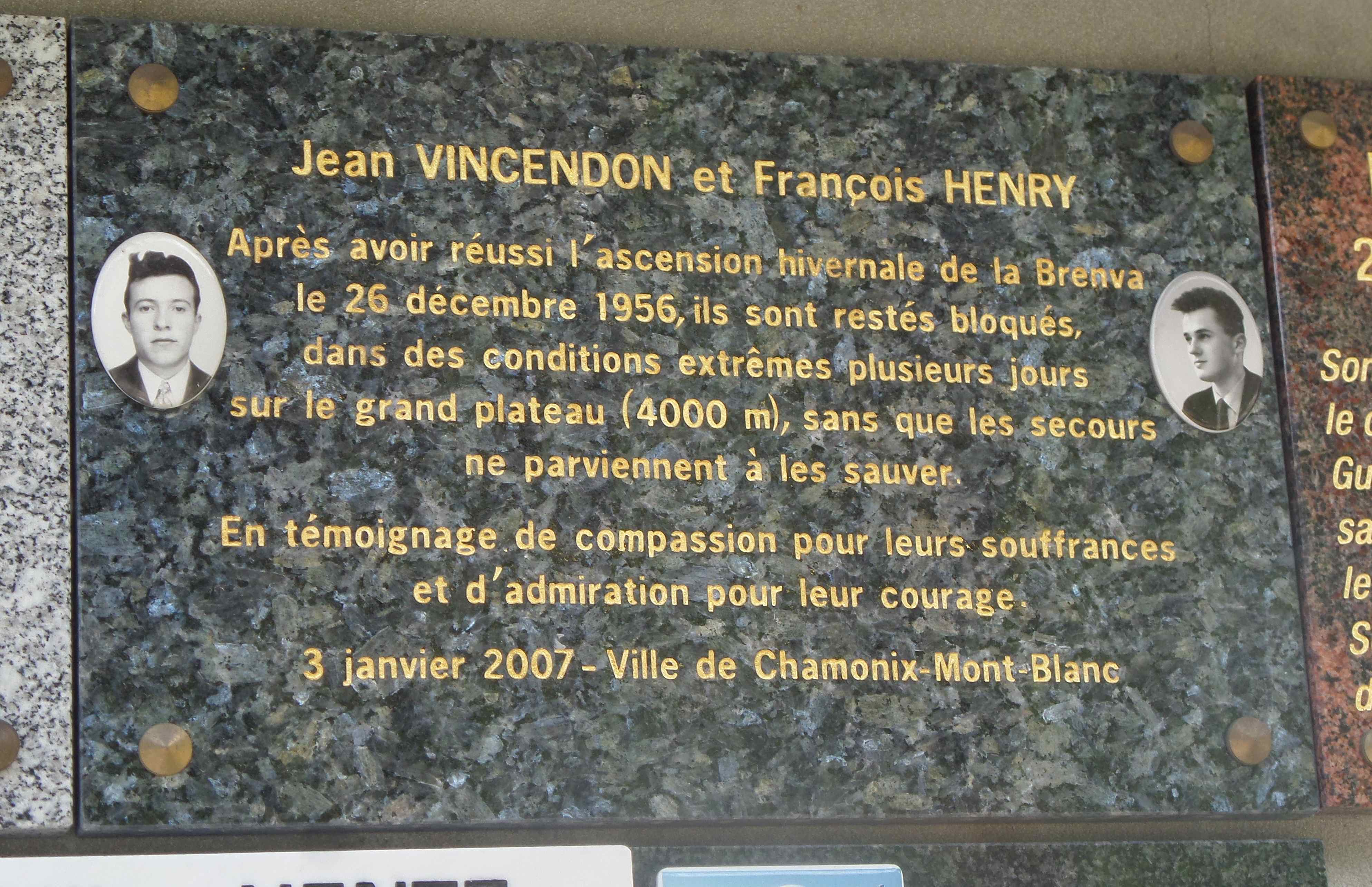 Au cimetière de Chamonix, sur l’un des murs célébrant la mémoire des disparus en montagne, la plaque la plus ancienne rappelle le drame Vincendon-Henry.