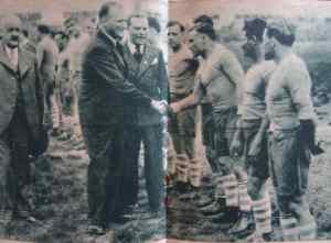 L’équipe basque espagnole venue par des chemins détournés pour cause de guerre civile à Paris rencontrer et battre le Racing au Parc des Princes 3-0. Et cela, comme il est mentionné dans la légende malgré un entraînement peu poussé et un régime plutôt sous-alimenté depuis quelques mois. Tout est dit !