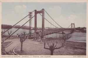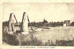 …avec quatre piles au milieu du fleuve. Il fut remplacé en 1931 par un pont suspendu semblable à celui que l’on connaît de nos jours… pont qui connut quelques problèmes en 1944.