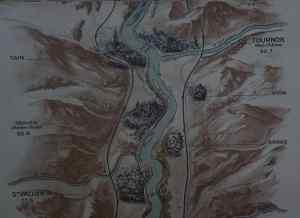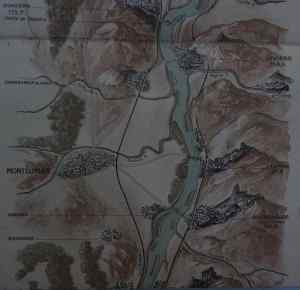 A noter que légèrement en amont de Pont, juste avant le confluent de l’Ardèche, le dessinateur n’a pas omis de représenter l’usine du Banc Rouge sur la commune de Saint-Marcel-d’Ardèche, poudrerie qui sauta un beau jour de 1962.