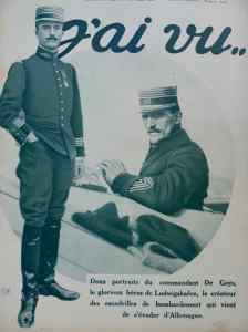 Double page aviation avec les héros des airs devant remplacer Guynemer dans le coeur de la population. Il s’agit de René Fonck qui survivra à la guerre avec 75 victoires homologuées et entrera ensuite en politique (c’est l’As des As en comptabilisant le plus de victoires françaises), Gabriel Guérin (homonyme de mon grand-père) qui totalisait 23 victoires quand il se tua lors d’un vol d’essai le 1er août 1918 et Hector Garaud originaire de Saint-Antoine(-l’Abbaye) qui remporta 13 victoires avant d’être gravement blessé. Il se tuera lors d’un vol d’essai le 02 avril 1940 à Montpellier.
