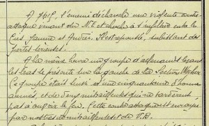 Restait Marius Joseph dans les Armées, appellation officielle pour dire qu’on est trop front. Début 1917, il est blessé à Douaumont le 22 janvier par un éclat de grenade à la tête. Soigné, guéri et renvoyé à la guerre, il subit une autre blessure plus grave à Champeroux le 22 décembre de la même année 1917. Lors d’une attaque, il se pique sur un fil de fer barbelé et sa blessure s’infectera au point de lui faire perdre la flexion des doigts et du poignet gauche. Retour en caserne pour Marius en service auxiliaire, à son tour.