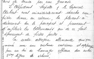 C’est en effet juste avant la relève du 26 octobre 1914 qu’un bombardement frappe l’unité un jour de calme relatif, le 25 octobre… comme on peut le lire dans le Journal de Marche ci-dessous.