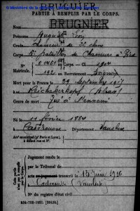 Auguste Léon Bruguier matricule 192 classe 1904, bureau de recrutement d’Avignon pour ceux qui souhaitent aller consulter sa fiche matricule sur le site des Archives du Vaucluse.