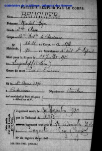 On apprend sur les registres matricules que Léon Bruguier fut tué quelques semaines après avoir rejoint le 6ème BCP, le 29 septembre 1915, le jour de la Saint-Michel, date de la fête patronale de son village de naissance !