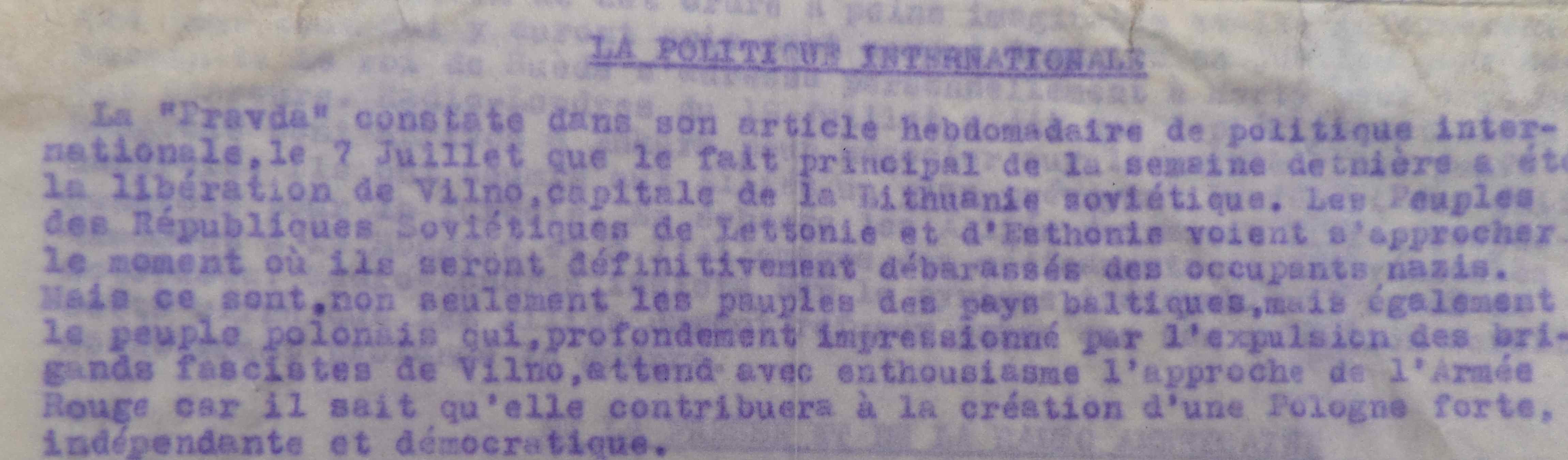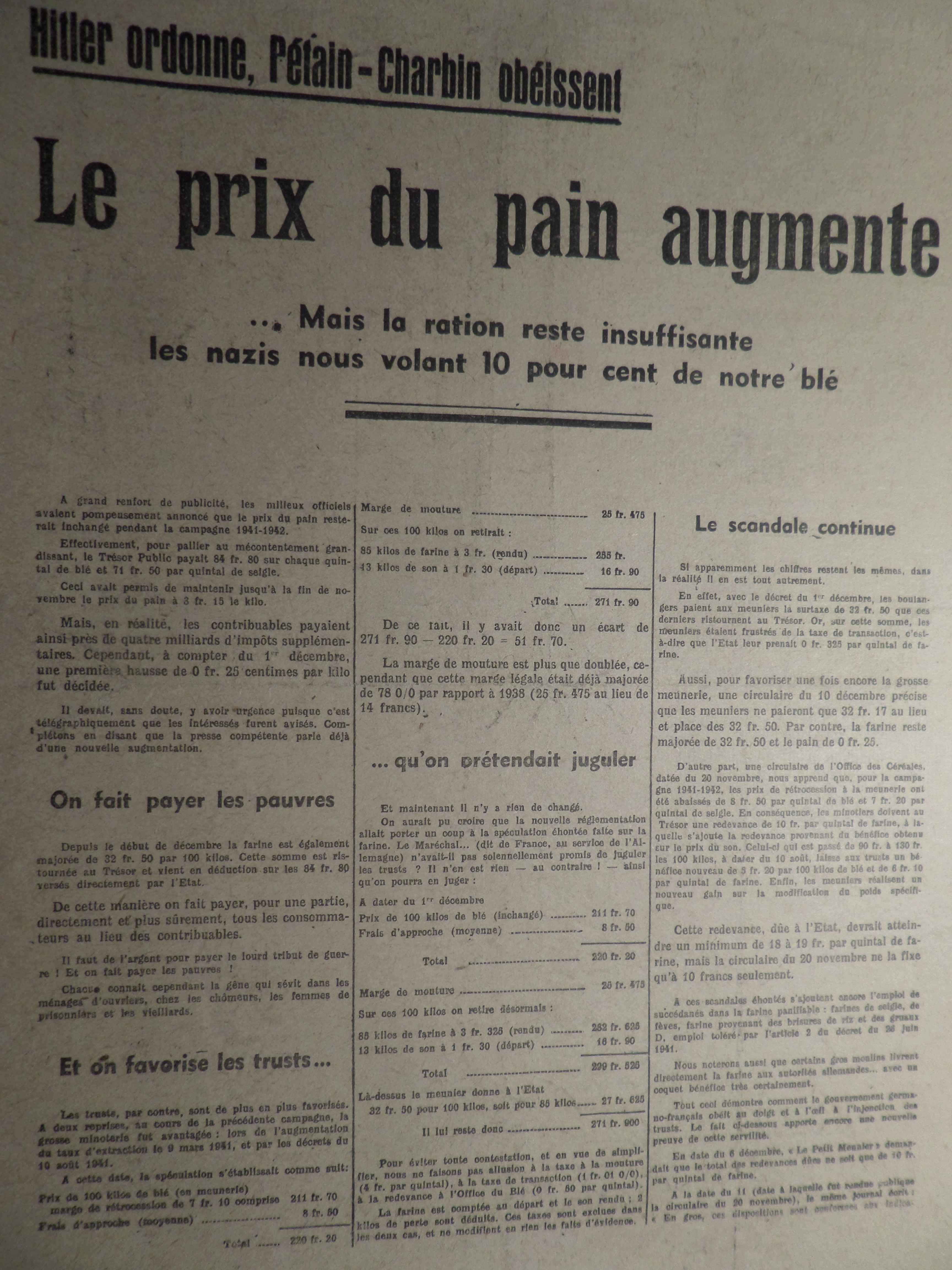Un tract de 2 pages (1 feuille recto-verso) ronéotypées, un journal: La Vie Ouvrière, organe de la CGT qui perdure de nos jours, feuille clandestine en 1942. Une date: celle du 17 octobre 1942, une consigne: NE JETEZ PAS CE JOURNAL. FAITES LE CIRCULER.