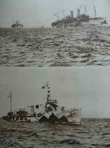 Arrivée de troupes américaines dans les eaux territoriales françaises, les destroyers français escortent les transports de troupe pour prévenir une éventuelle attaque des sous-marins.
