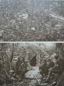 Dans les Flandres, utilisation de camouflages modernes pour masquer hommes et armement aux ennemis.
