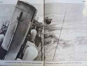En double page centrale, un destroyer anglais à la poursuite d’un sous-marin allemand.