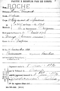 Fiche matricule d’Henri Fernand Roche de Mémoire des Hommes.
