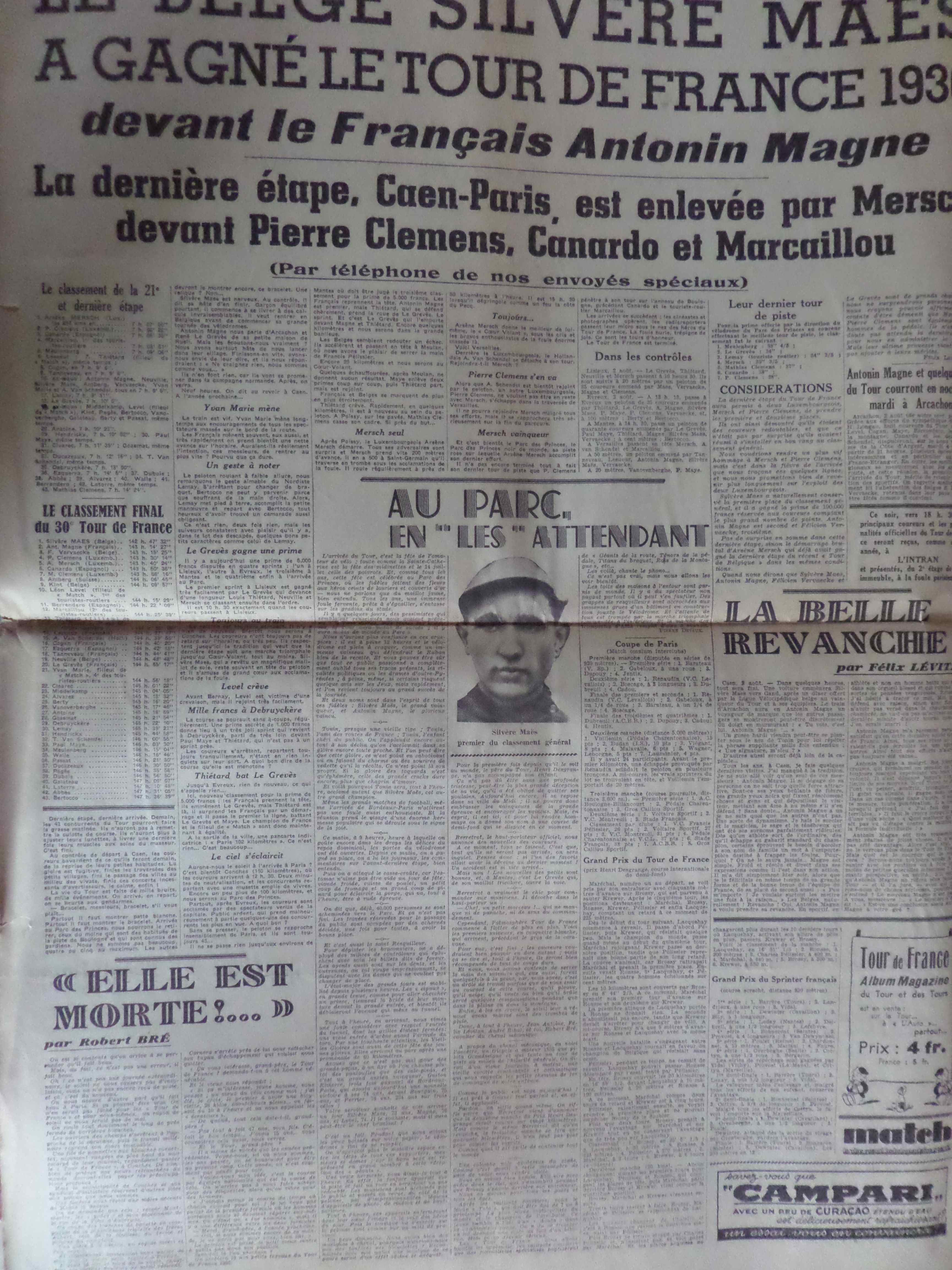 Le Miroir des Sports qui va raconter la fin plutôt tranquille du Tour de France 36, joué depuis l’Aubisque.