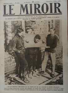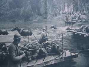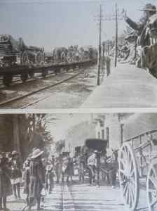 Les ravages commis par un bombardement français ! Mais pas n’importe lequel ! Celui qui permit de détruire la Grosse Bertha, canon de marine qui bombarda Dunkerque en avril et mai 1915. On voit ce qu’il reste du canon au centre de la page de gauche et les voies de chemin de fer qui le ravitaillait. Cette pièce était positionnée à l’arrière des tranchées allemandes à près de 28 km de la ville.