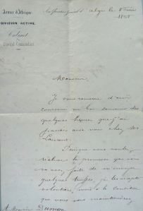 Une autre lettre amusante, la réponse faite par Général commandant l’Armée d’Afrique à une proposition d’Alexandre Dumon. Ce général et Alexandre s’étaient rencontrés chez Monsieur Laurent et c’est là que l’ancien vice-consul de France à Trinidad avait fait la promesse d’envoyer quelques truffes à son interlocuteur, militaire en Algérie.