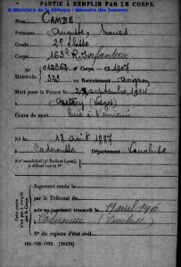 La fiche d’Auguste Cambe de Mémoire des Hommes