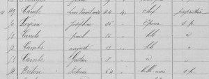 1896. André, le père, a retrouvé sa vraie identité. Un petit Gaëtan est arrivé dans le foyer en 1892, un troisième garçon pour les Cambe-Farjon ! En bas de la liste des membres de la maisonnée apparaît Victorine Breton, mère de Mme Farjon. Le décès du père de Marie Joséphine Farjon a eu pour conséquence ce regroupement familial. Agée de 60 ans, ce serait une jeune grand-mère à notre époque. Rentière donc relativement aisée.