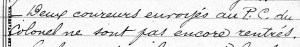 Il y a eu bien quelques tentatives allemandes pour reprendre les tranchées perdues les jours précédents. Il y a eu quelques bombardements mais rien de bien grave suivant l’Etat-Major. Il y a surtout eu quelques soldats tués et blessés ce jour-là. Parmi eux, Octave Marius Paul Guéricolas, tué à Pruny, au bois des Marquises !