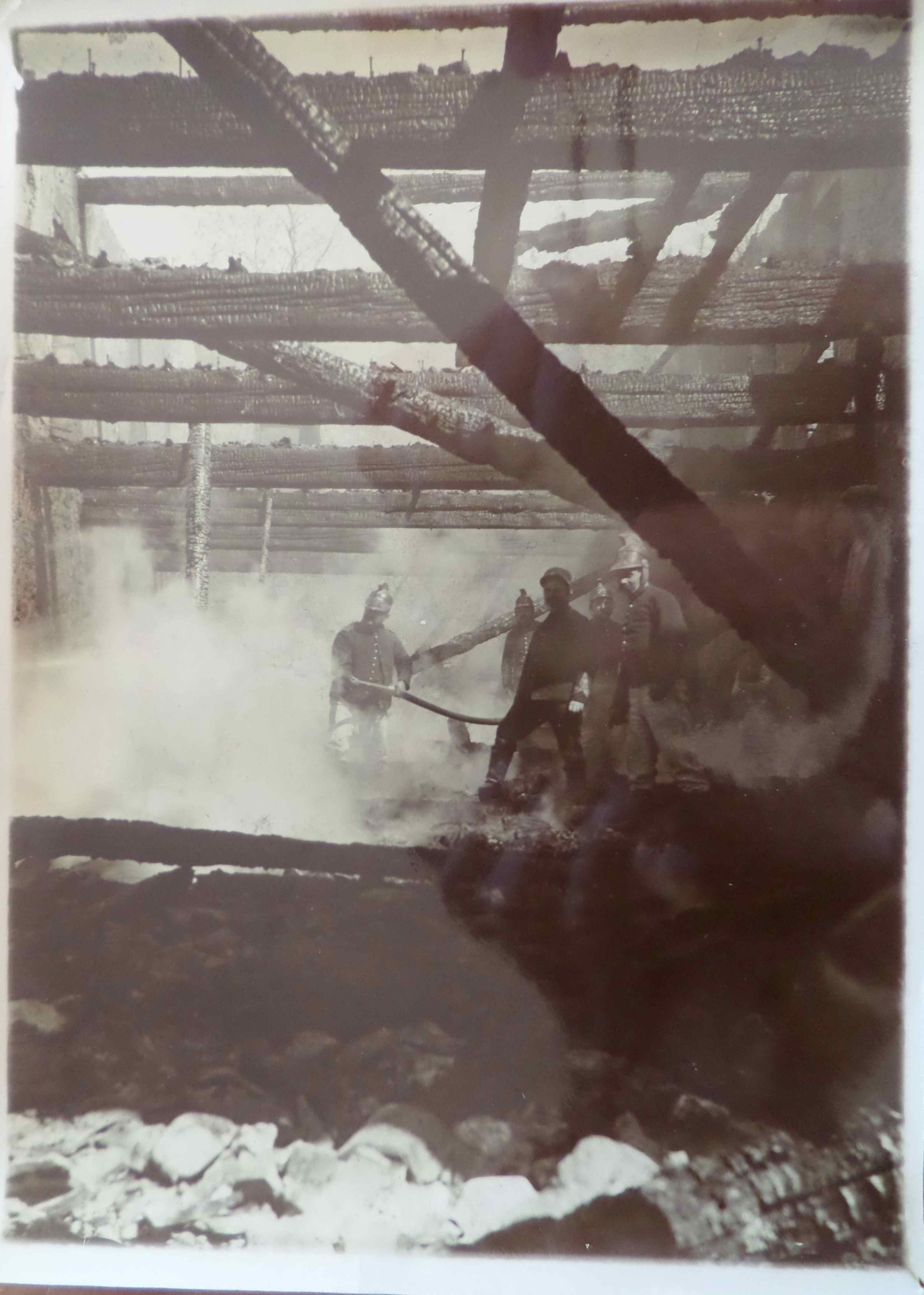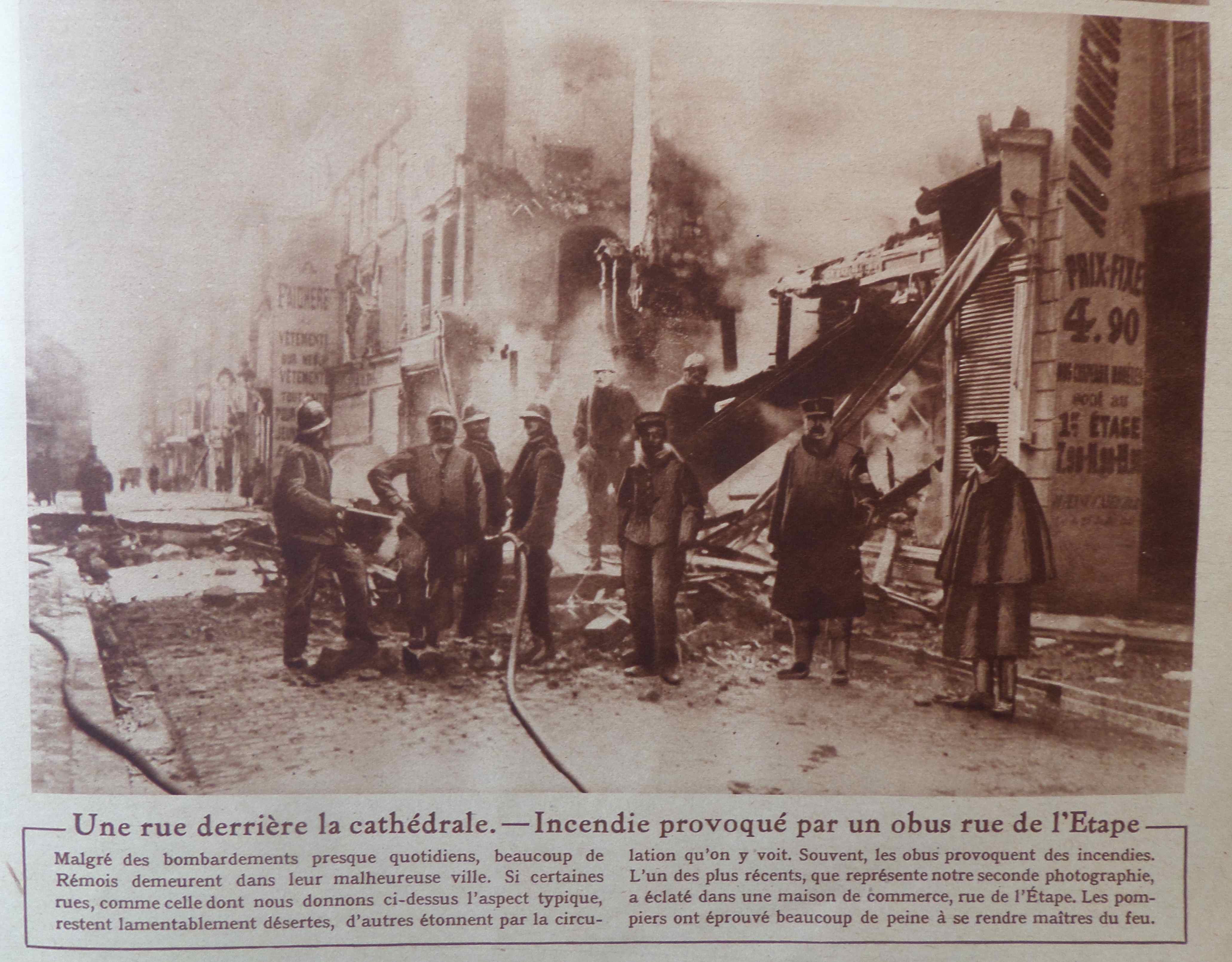 D’autres pompiers en action à Reims après de nouveaux bombardements classiques.