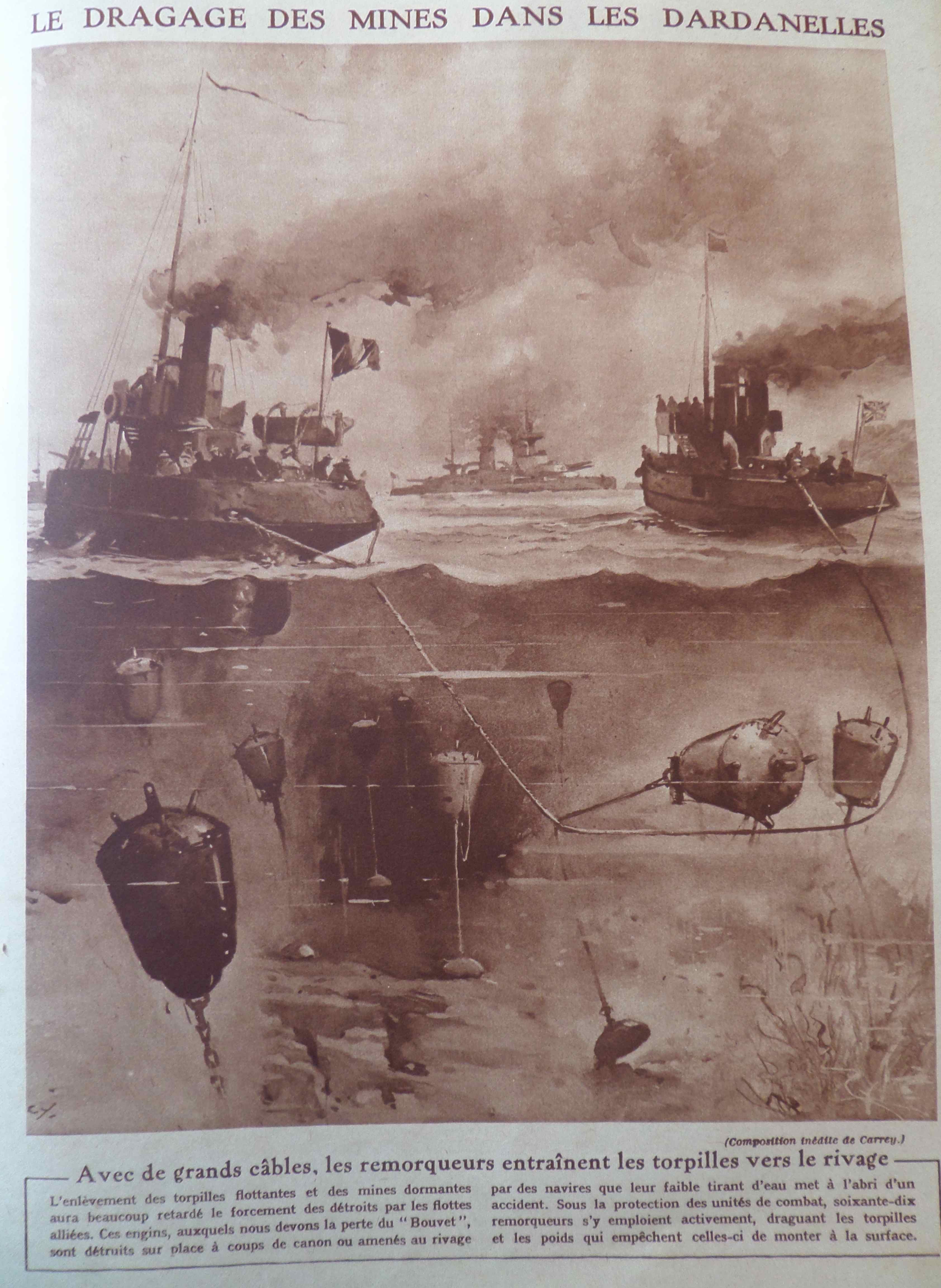 en prenant soin de mettre aux 2 extrémités du câble qui accroche les mines un navire français et un navire anglais. La belle entente cordiale !