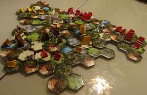 Ce jeu ressemble à bien des égards à AZUL mais là il s’agit de vitraux. Les dés remplacent les petits morceaux de verre, dès que l’on choisit à chaque tour à la manière de la pose des premières colonies des COLONS DE CATANE.