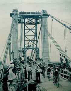 Il ne s’agit pas du pont vert actuel, moderne, fonctionnel, sûr et présentant tout de même un certain cachet. Non, il s’agit de ce pont suspendu…