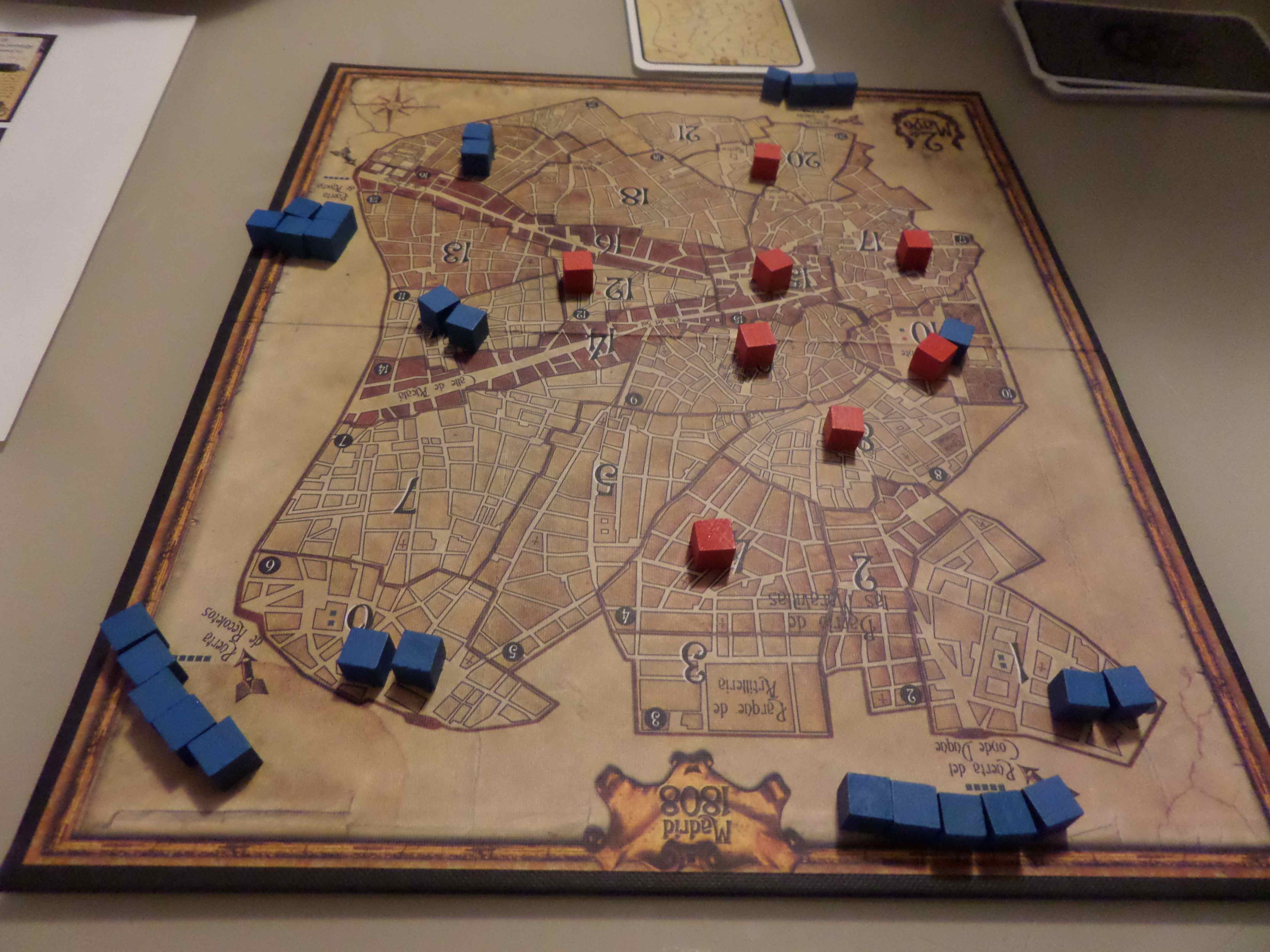 En seconde partie de soirée, avec Daniel, on a sorti DOS DE MAYO, ce petit wargame qui raconte la révolte du peuple de Madrid contre les troupes napoléonienne au début du mois de mai 1808. Comme cela se fait bien, 2 parties en inversant les rôles pour la seconde.