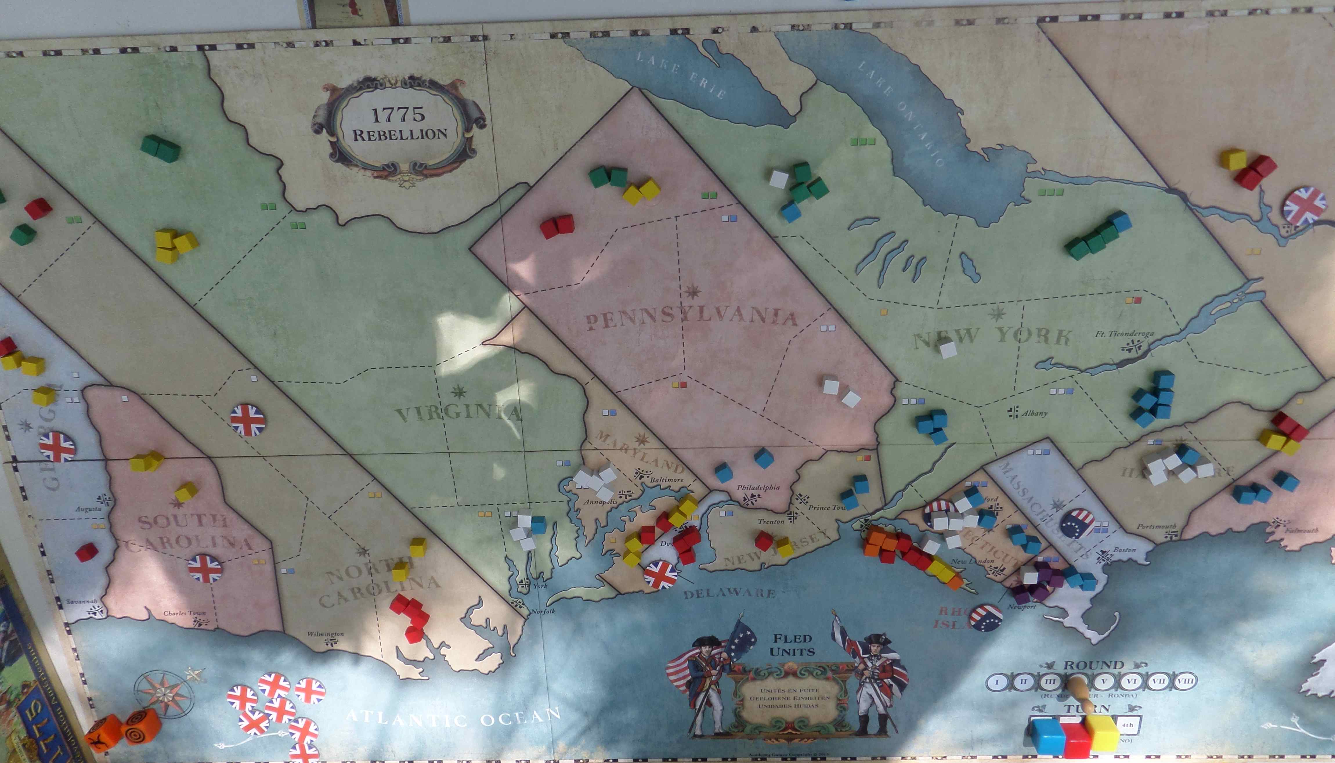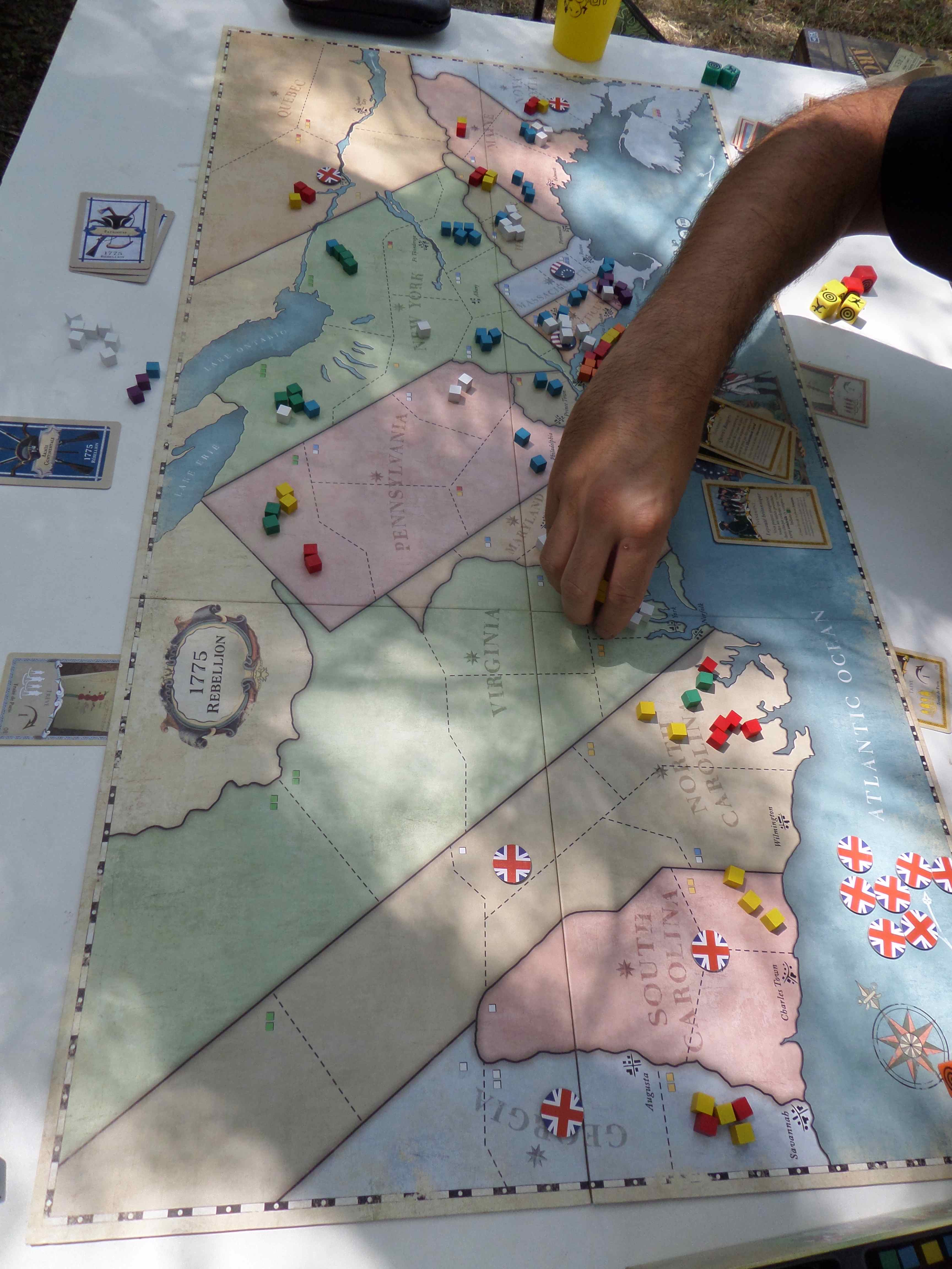La première manche vit une victoire des Espagnols que j’incarnais en 9 tours (/10), ayant détruit 3 armées françaises ce qui était suffisant avec les cartes qui réduisait d’une armée les conditions de victoire rouge.