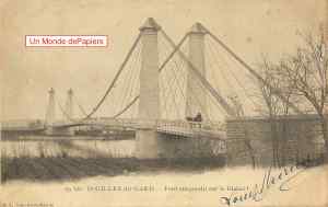qui fut ouvert à la circulation le 24 septembre 1830. Mais il connut au début bien des vicissitudes: en 1835, destruction d’une travée par le feu (oeuvre des passeurs ruinés ? On peut oser cette hypothèse), destruction d’une pile lors de la crue de 1840, destruction d’une autre pile lors de la crue de 1856… A chaque fois, le bac reprit du service.