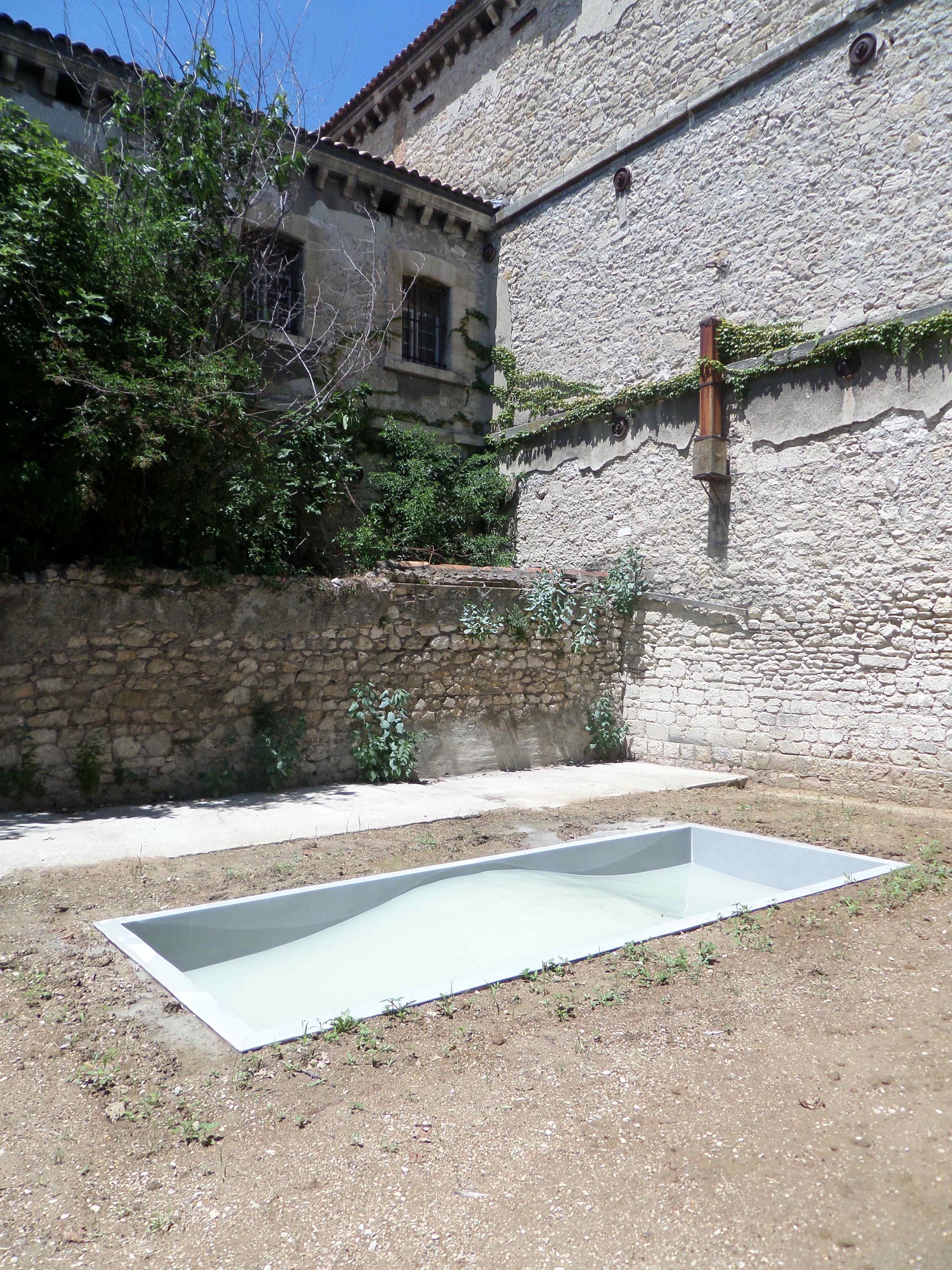 une piscine à vague dans une cour restaurée