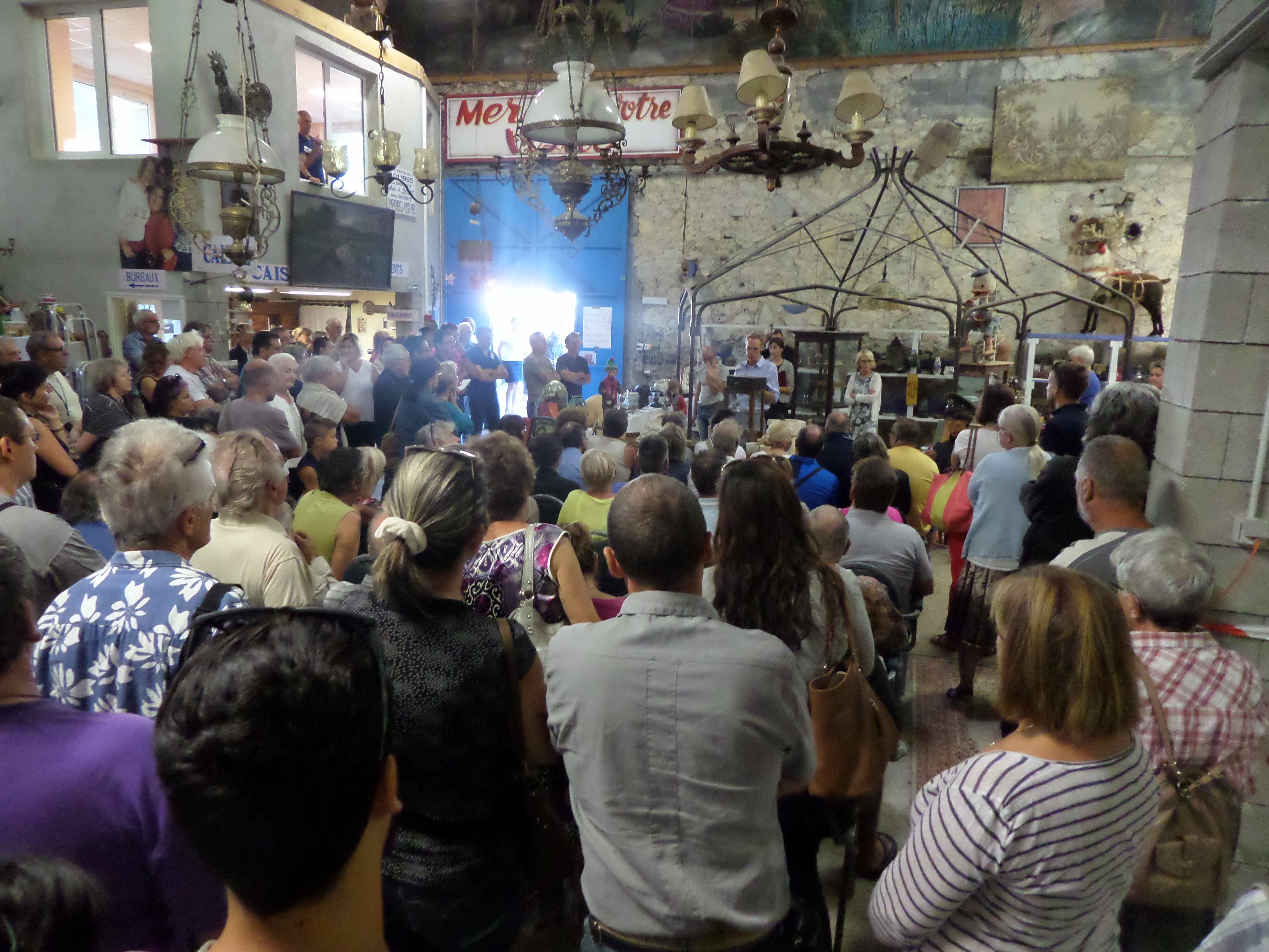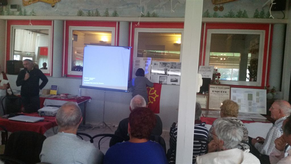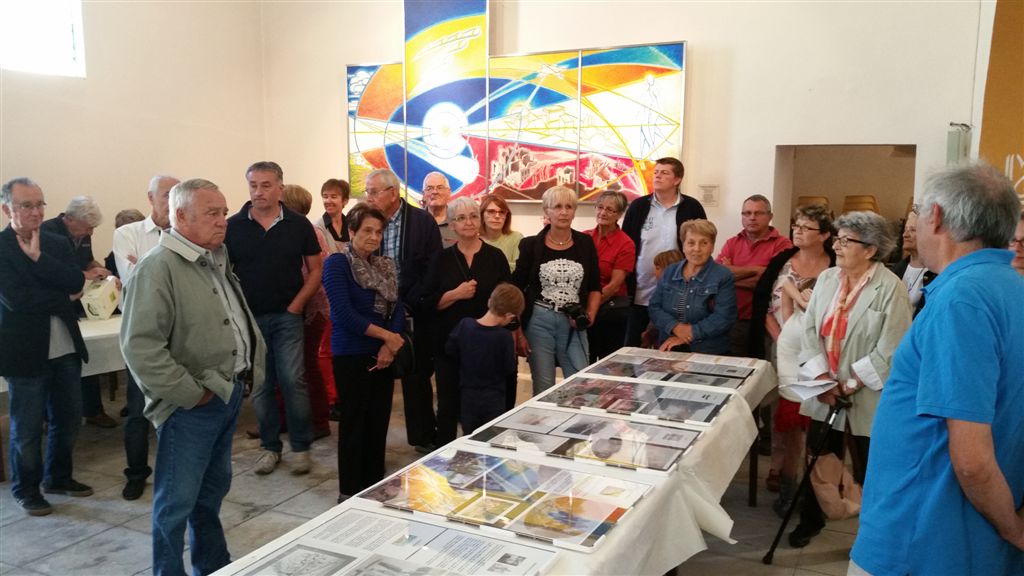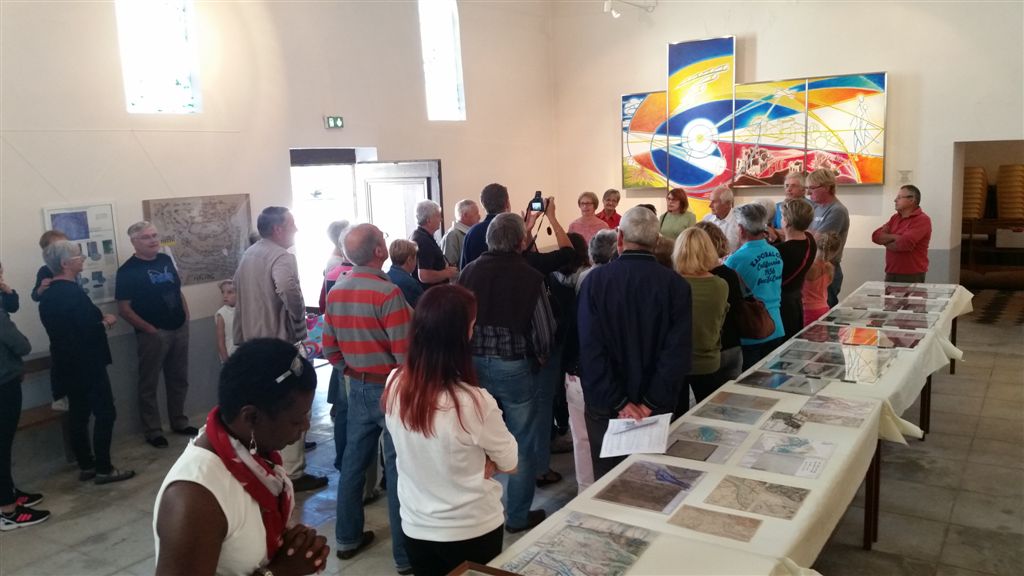 Il s’agit d’un bâtiment communal ancien situé en face de l’entrée secondaire de l’EHPAD où résident mes parents. Ce lieu avait été restauré fin 2012 mais depuis rien ne s’y était passé. Pendant la dernière campagne des élections municipales, le maire avait été critiqué pour l’absence d’inauguration et de mise à disposition de la salle aux associations. Certainement des dissensions au sein de l’ancienne équipe avaient empêché des festivités, les sortants s’étant représentés en mars sur 3 listes différentes. Le maire ayant été réélu, l’inauguration avait lieu ce matin et nous y sommes tombés dessus un peu par hasard.