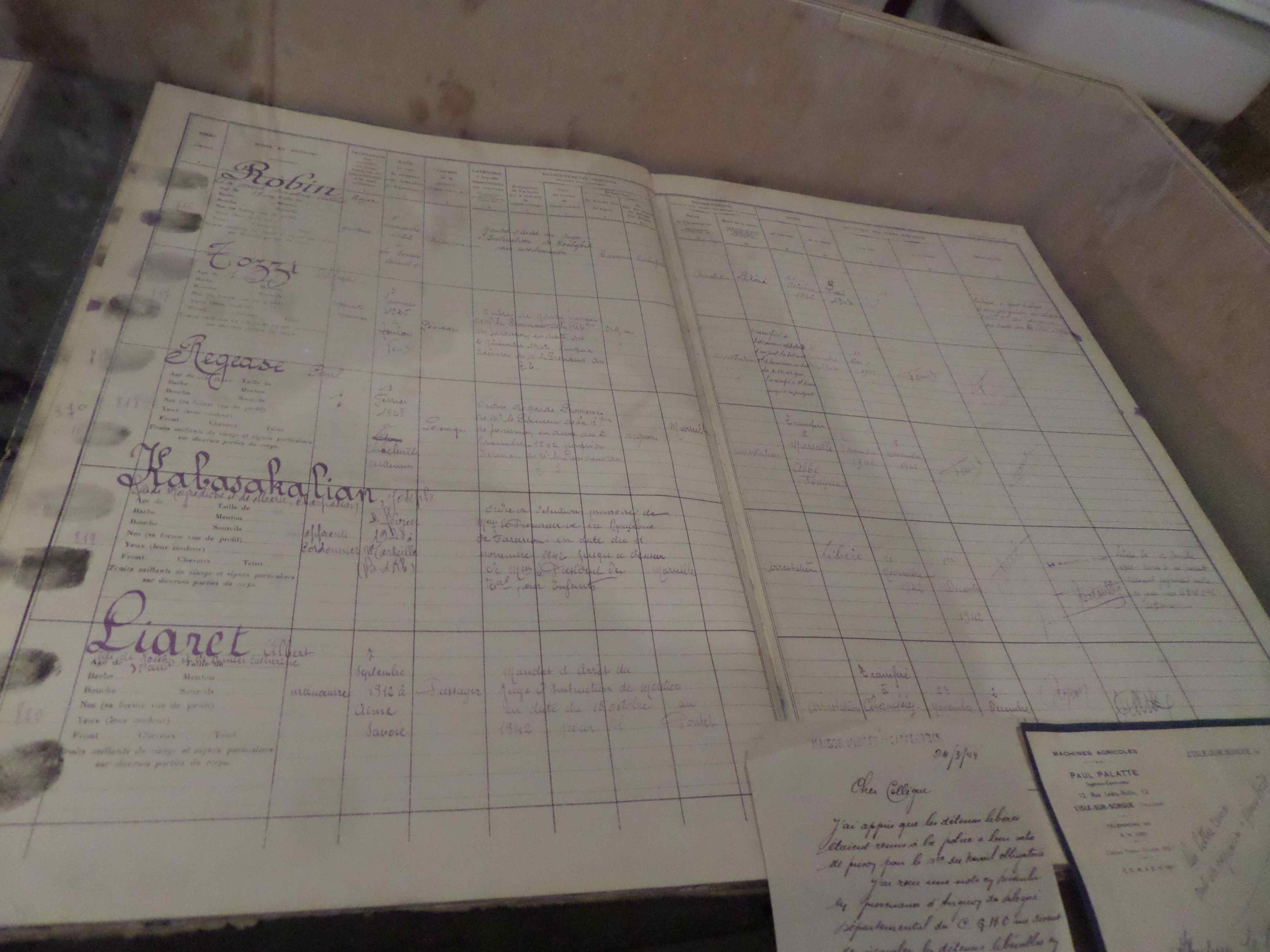 l’exposition de documents pénitentiaires- le registre matricule des entrées