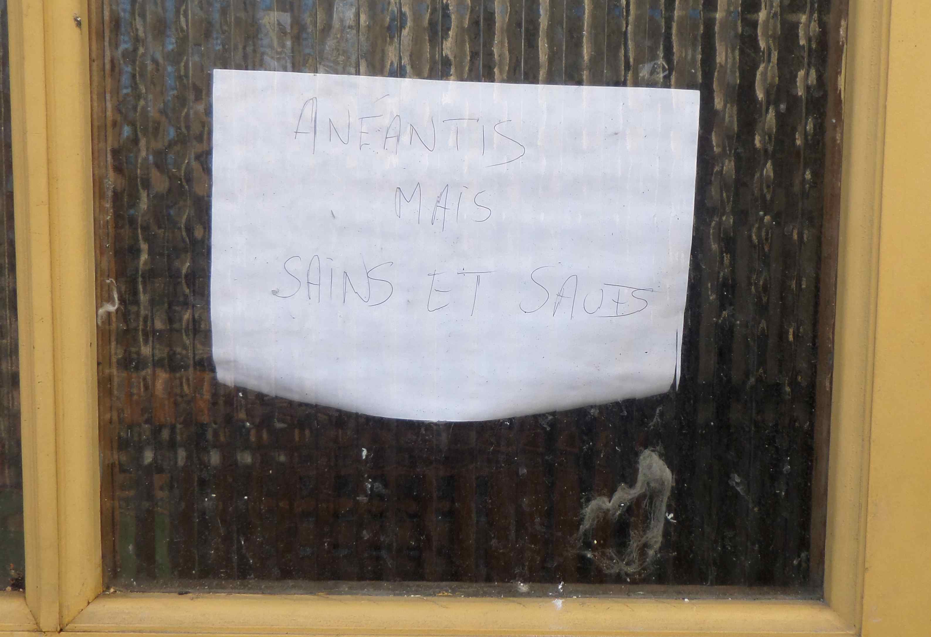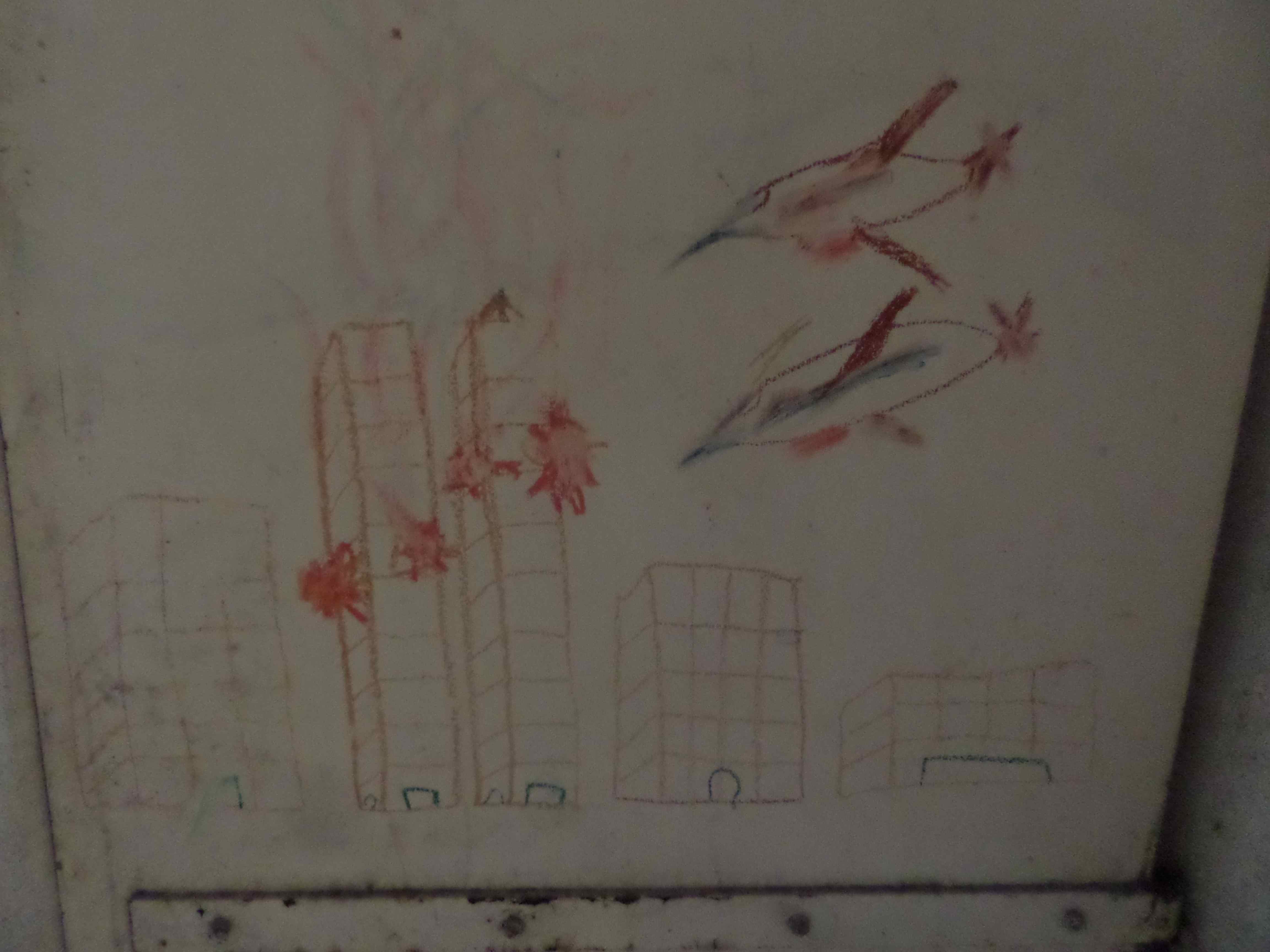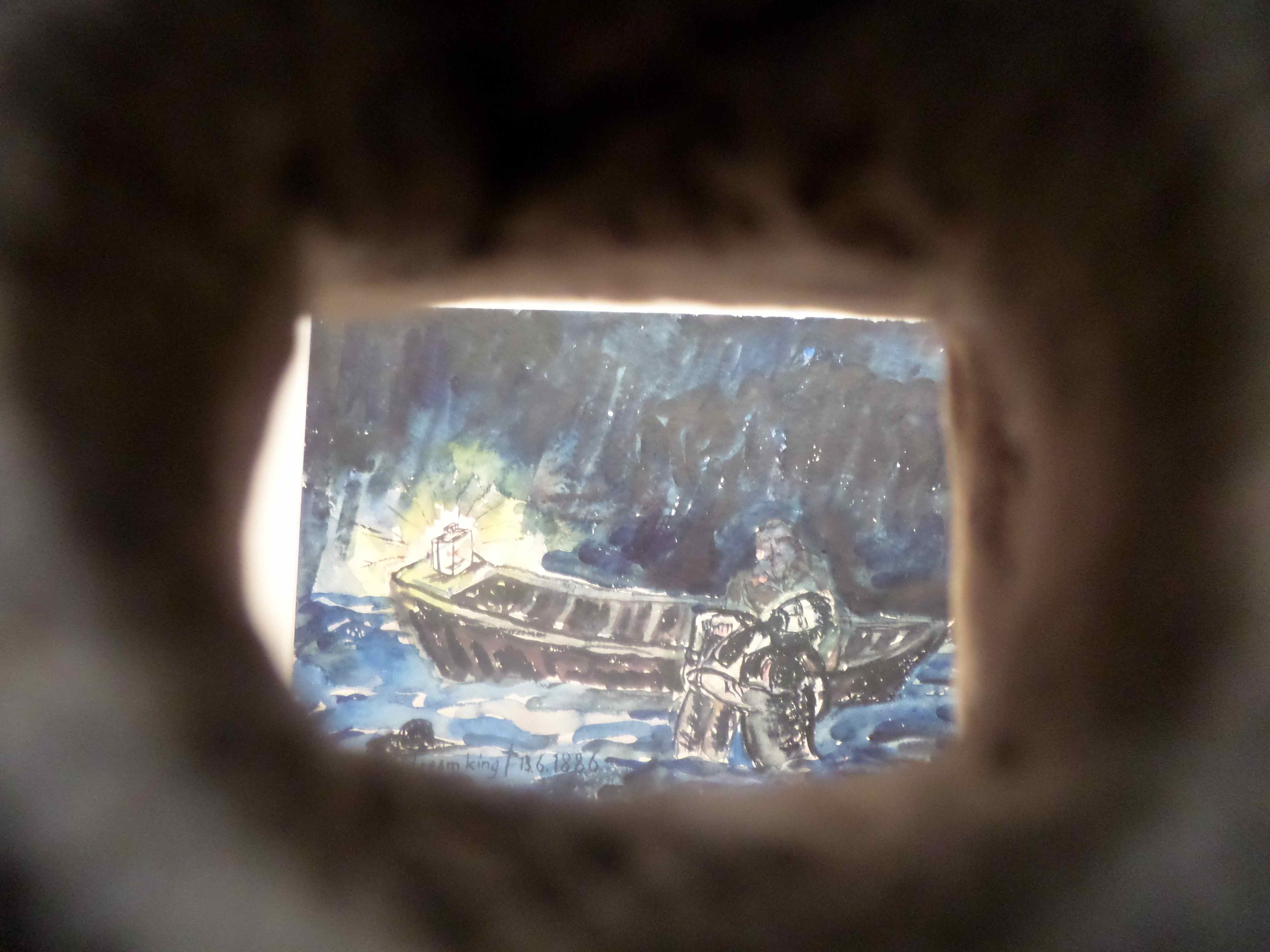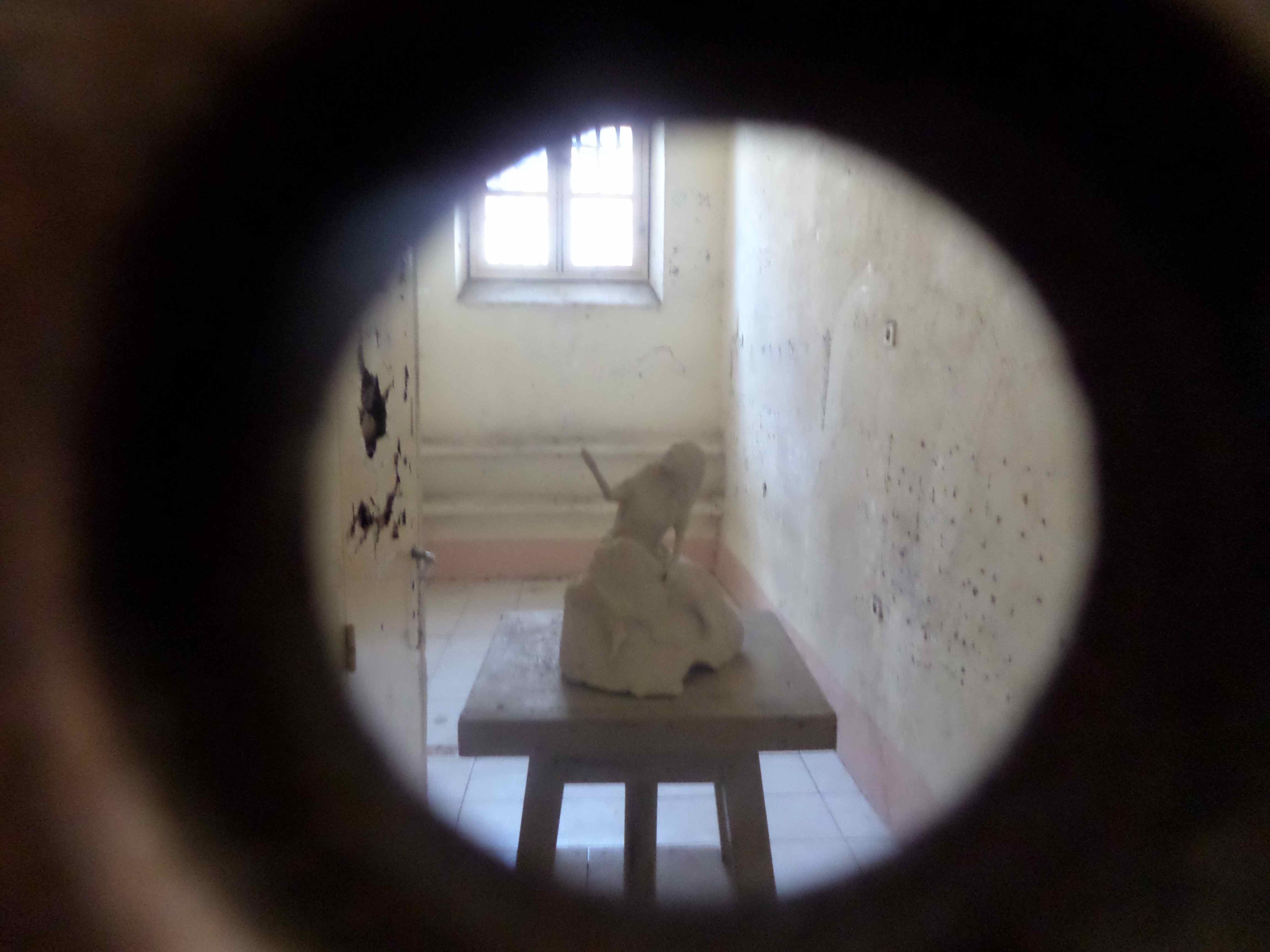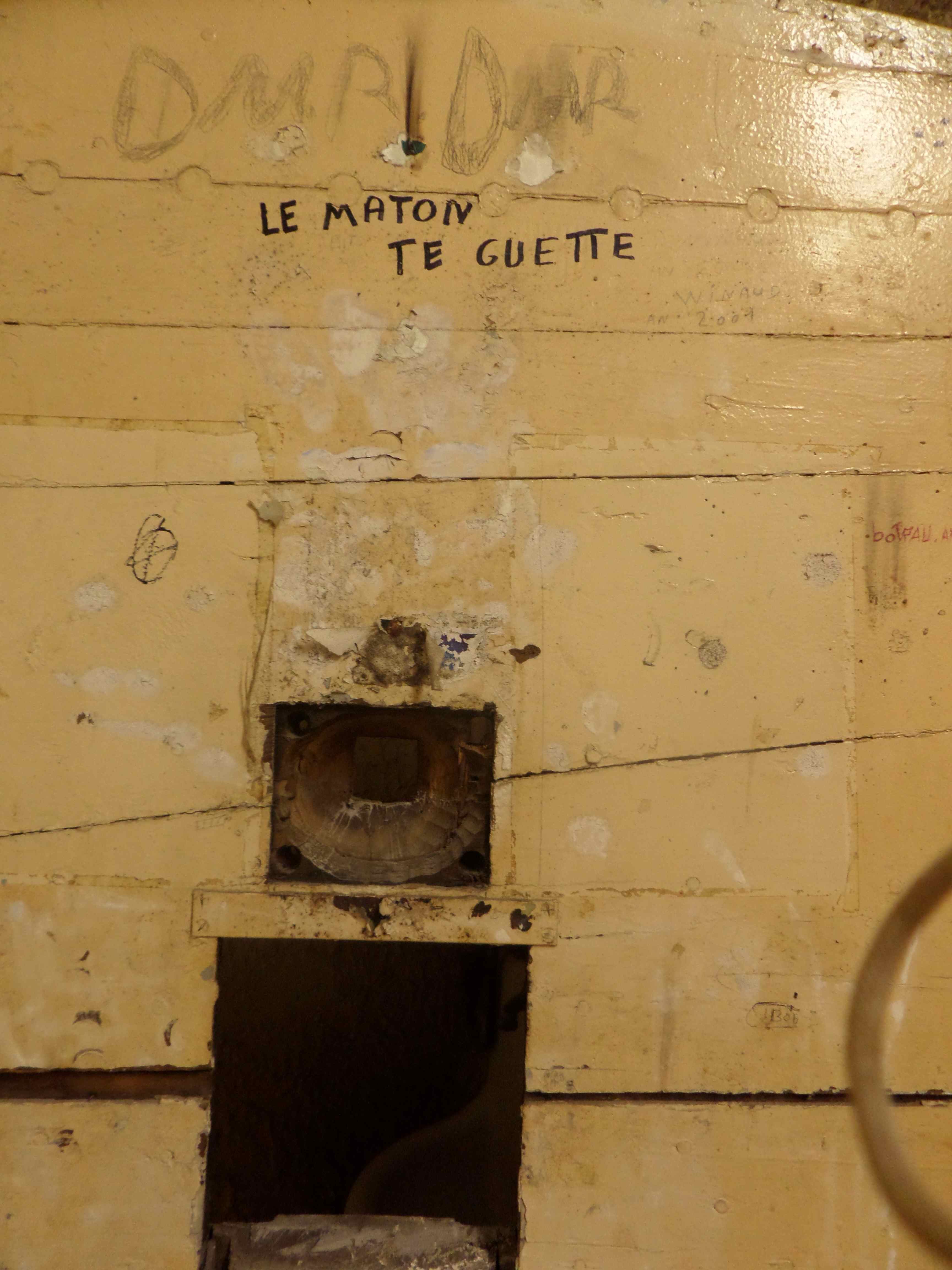 oeuvre vue par l’oeil du maton (non loin de cette cellule, un oeil d’une autre cellule reflétait l’image de votre oeil mais celui de l’appareil photo ne pouvait rendre la surprise angoissée du visiteur)