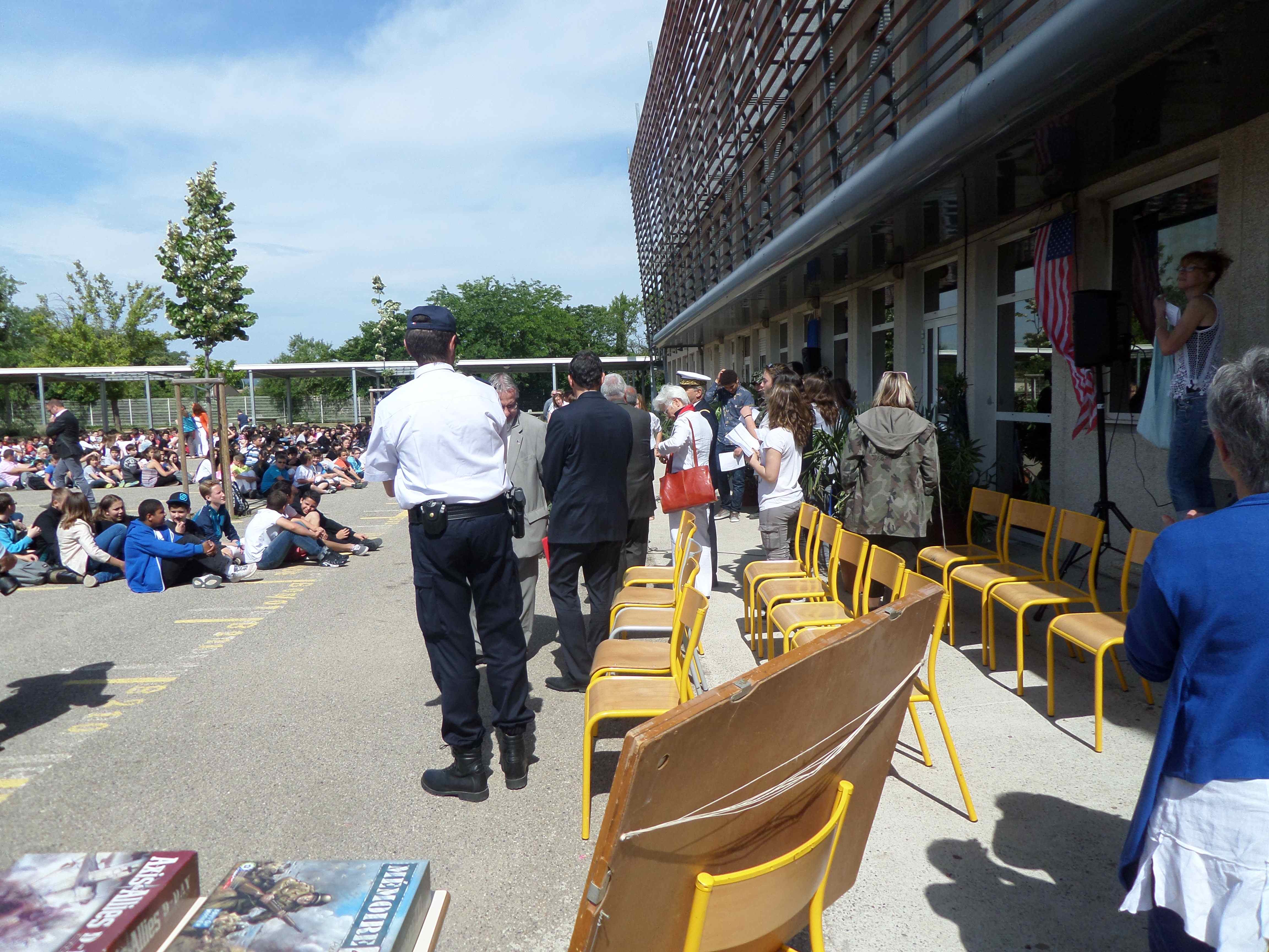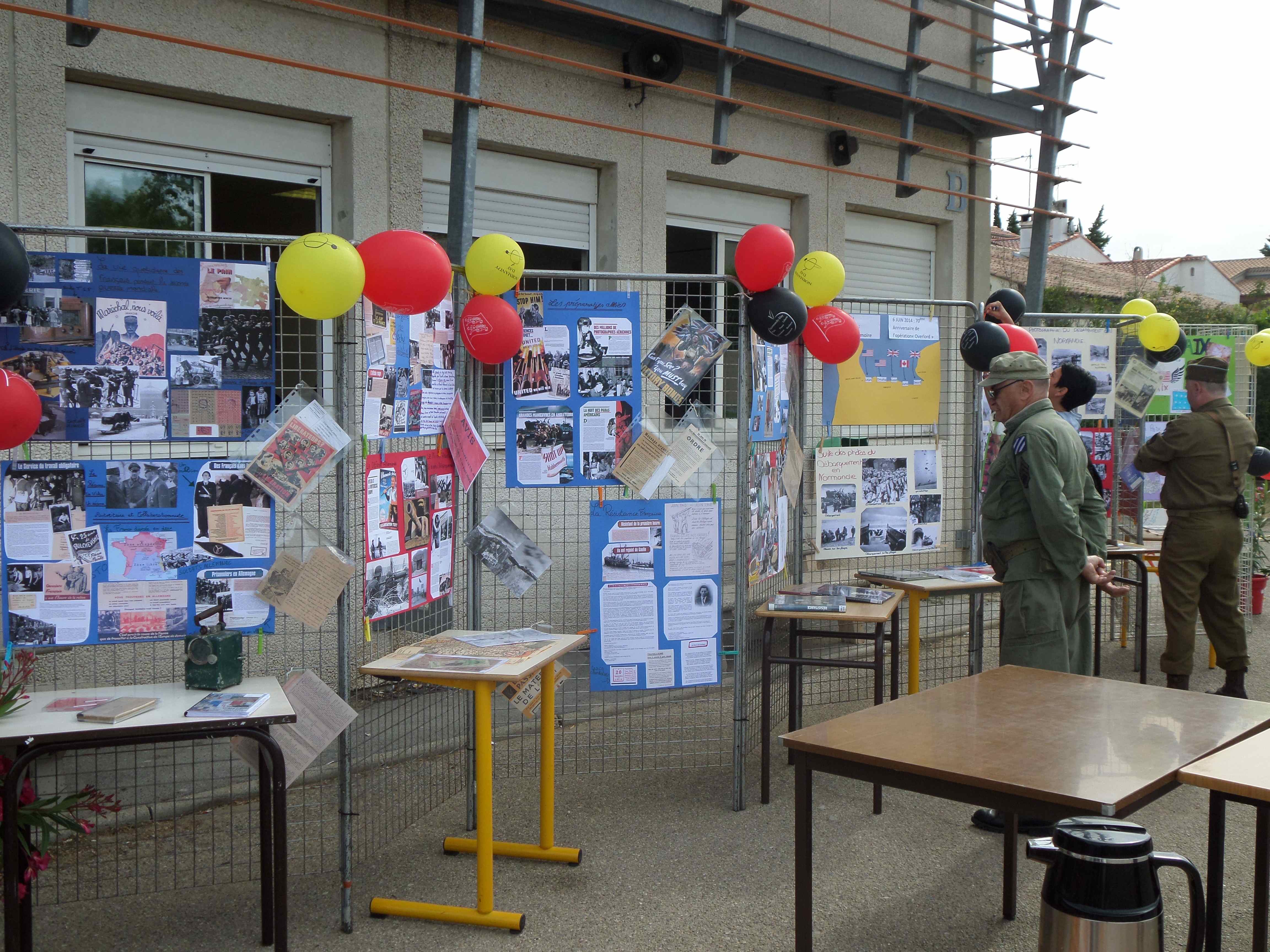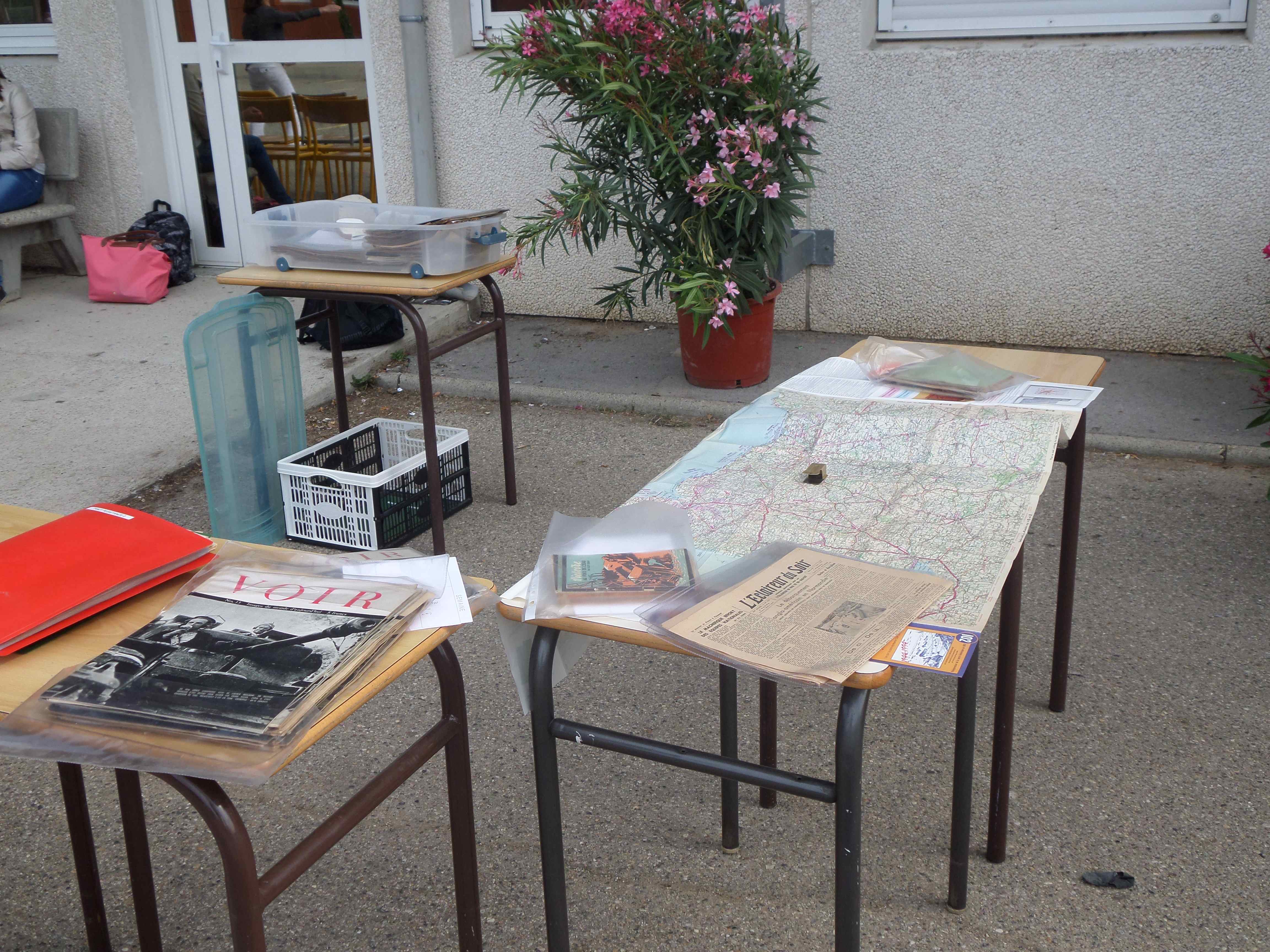 06/06/2014 Le D-DAY au collège MONOD. Invité par Mary et Cam, pour une exposition de mes vieux papiers et objets ayant un rapport avec la Libération et le Débarquement, à l’occasion d’une journée mémorielle à l’initiative du Principal et du Club Histoire (reportage sur France 3 au journal régional de 19h00)