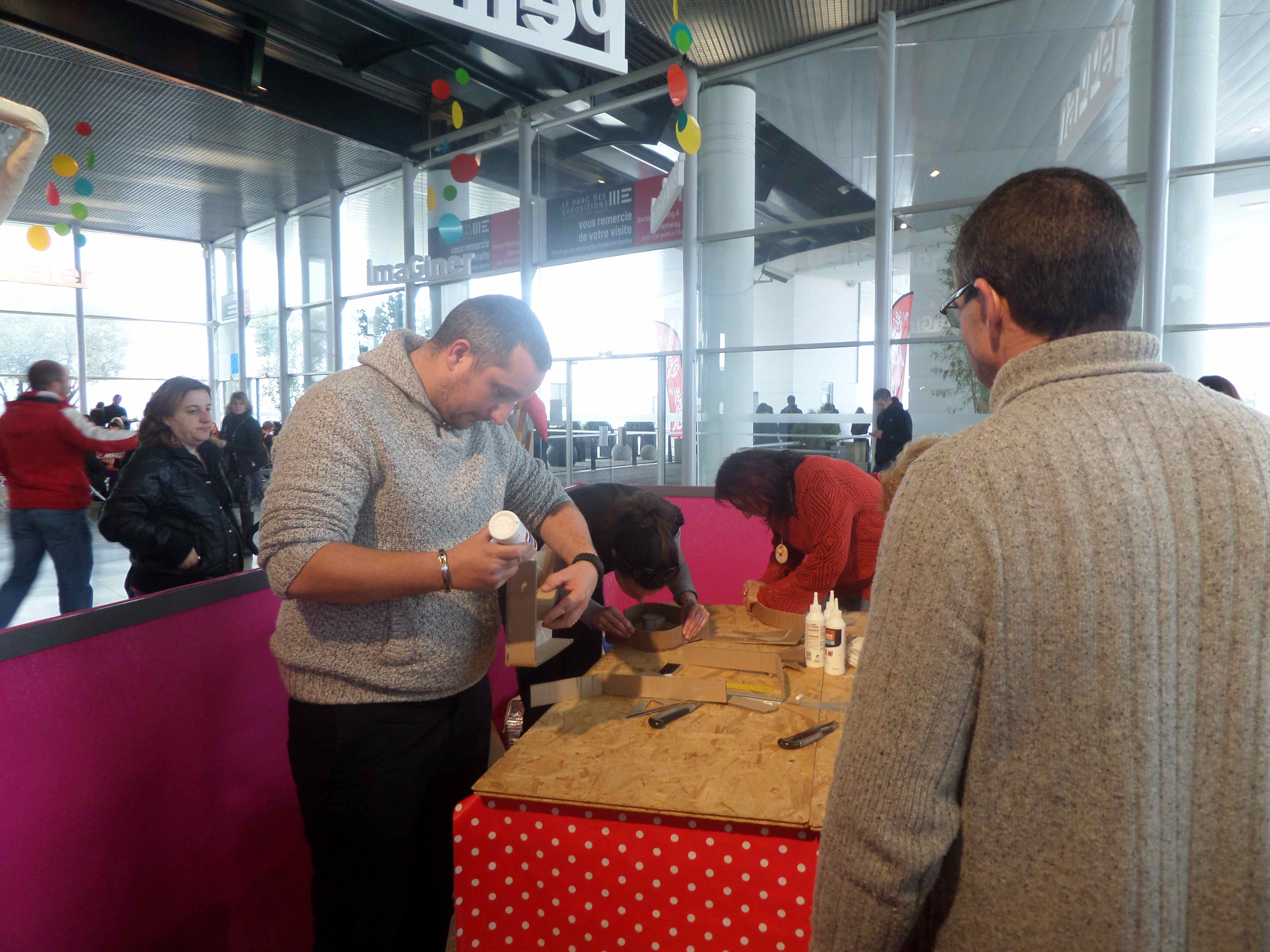 Un mois avant le salon Créativa, nous sommes allés à la Foire Méditerranéenne des Arts à l’Arena de Montpellier. Bernard Froment y occupe une place de choix non loin du bistrot central et dans l’espace VIP.