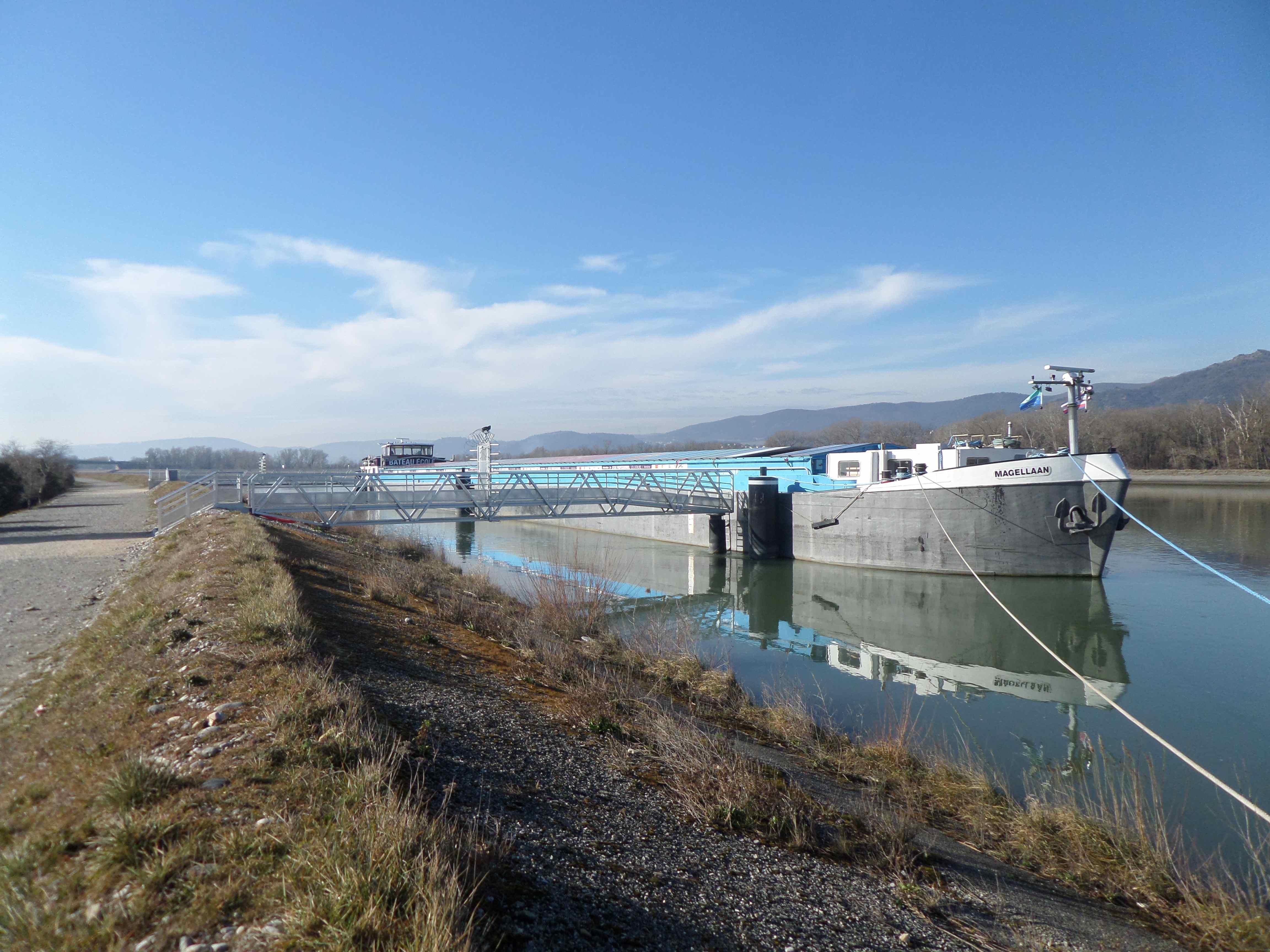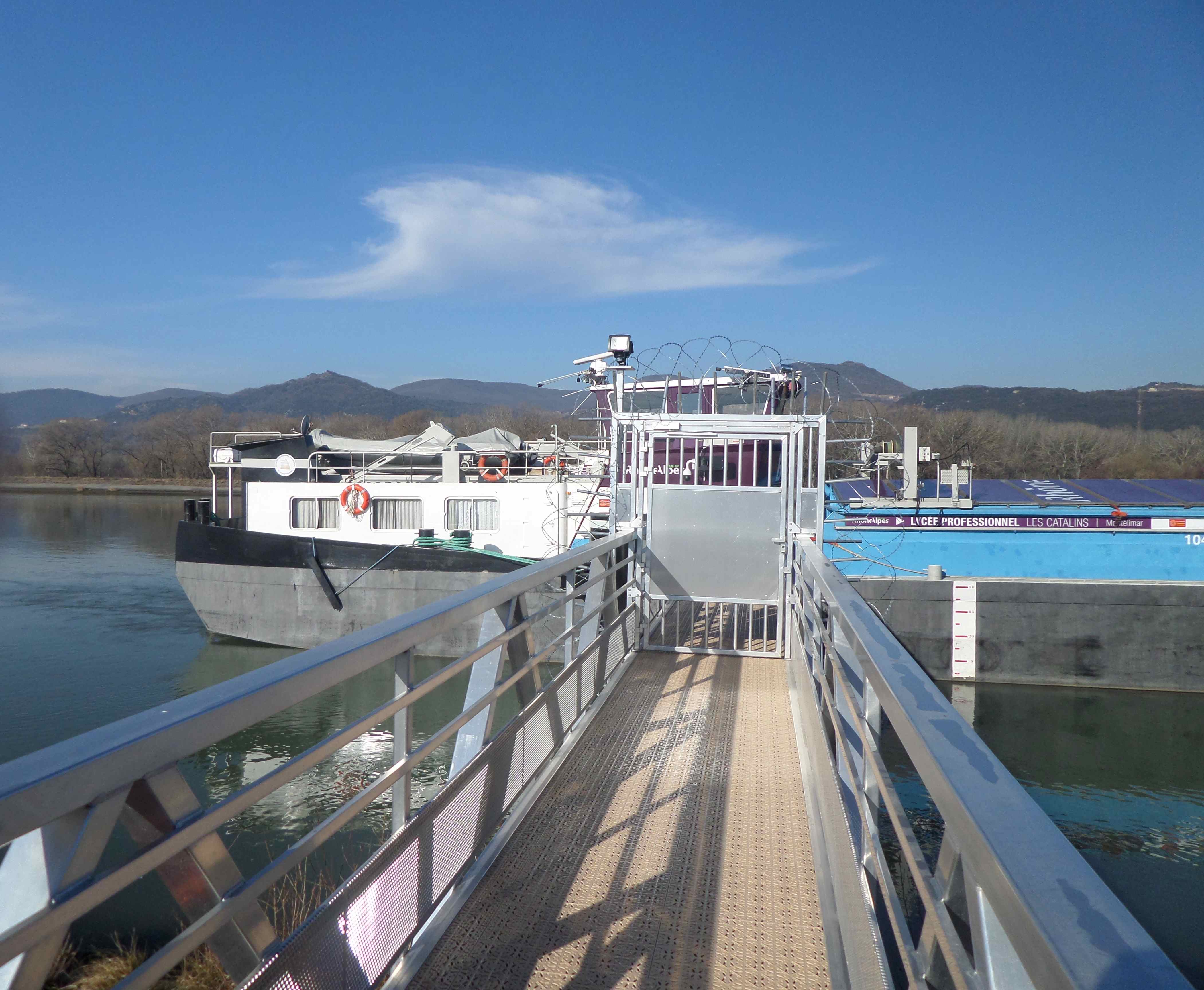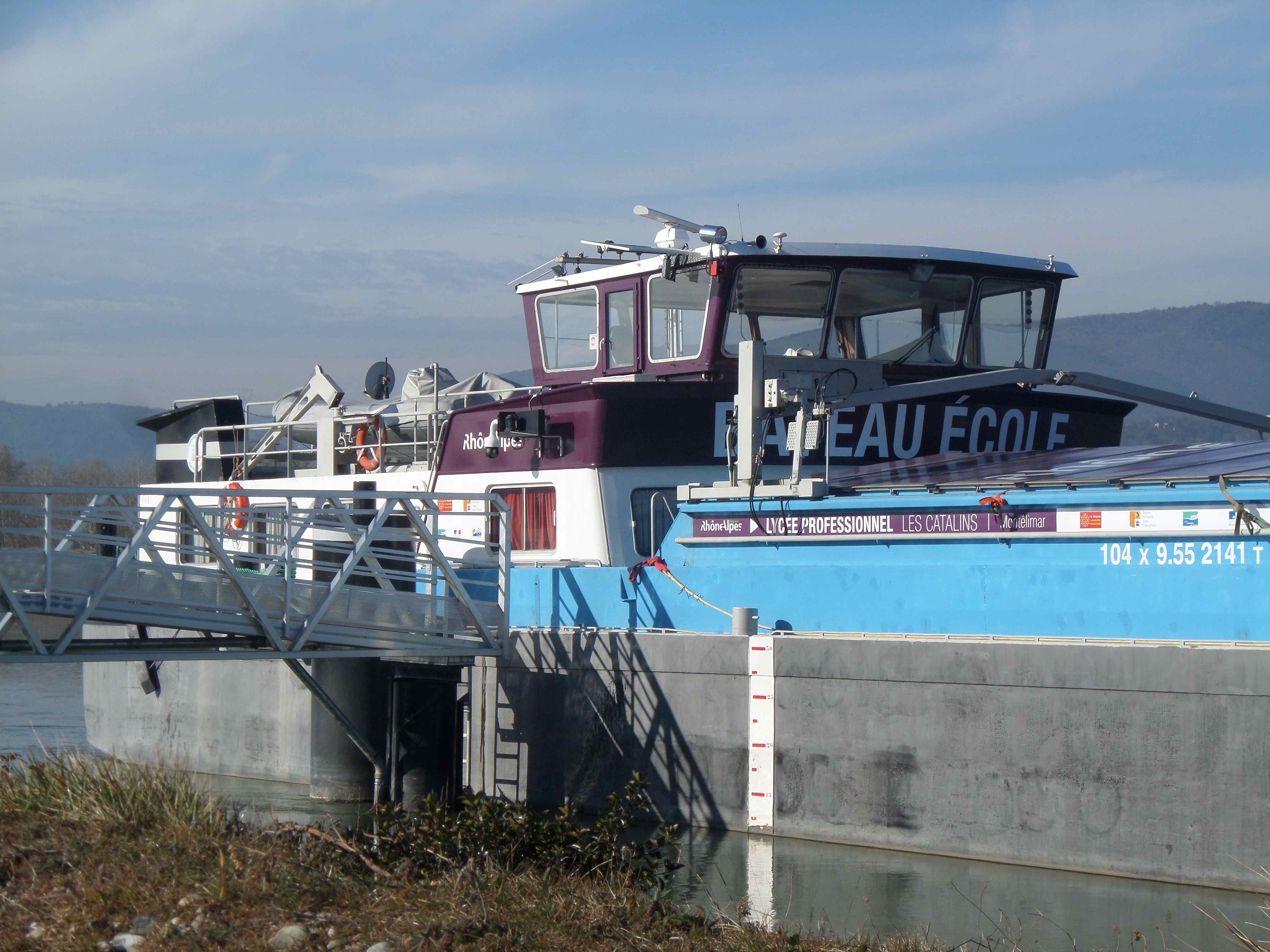 L’an dernier, on n’avait pu entrer et on avait écouté les explications sous le bruine et le mistral sur la digue du canal. Cette année, le temps n’est guère plus clément mais le public est accueilli par la proviseure, deux professeurs et un élève dans les parties les plus intéressantes de ce bateau qui forme les nouveaux mariniers du Rhône du XXIème siècle.