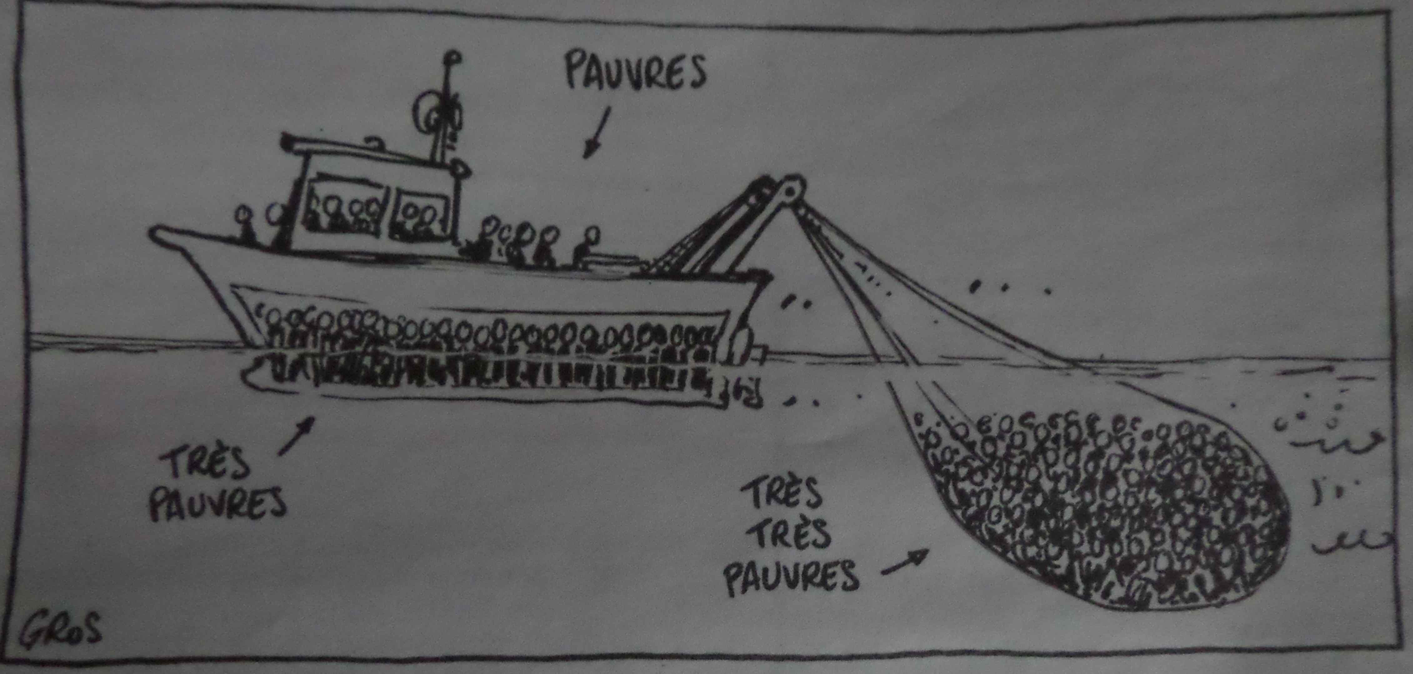 Le passage d’un luxueux bateau de tourisme pour riches étrangers, pendant notre visite.