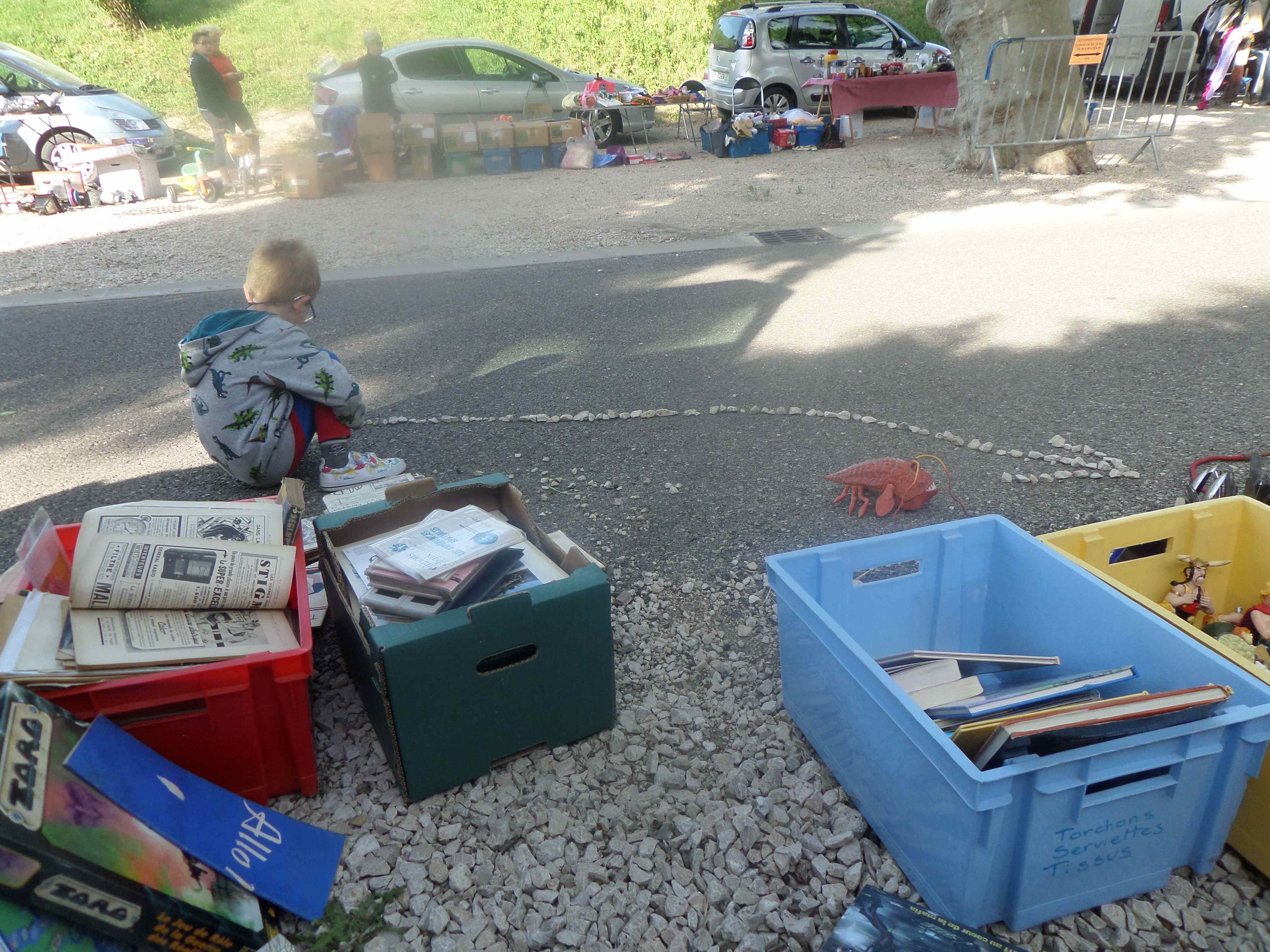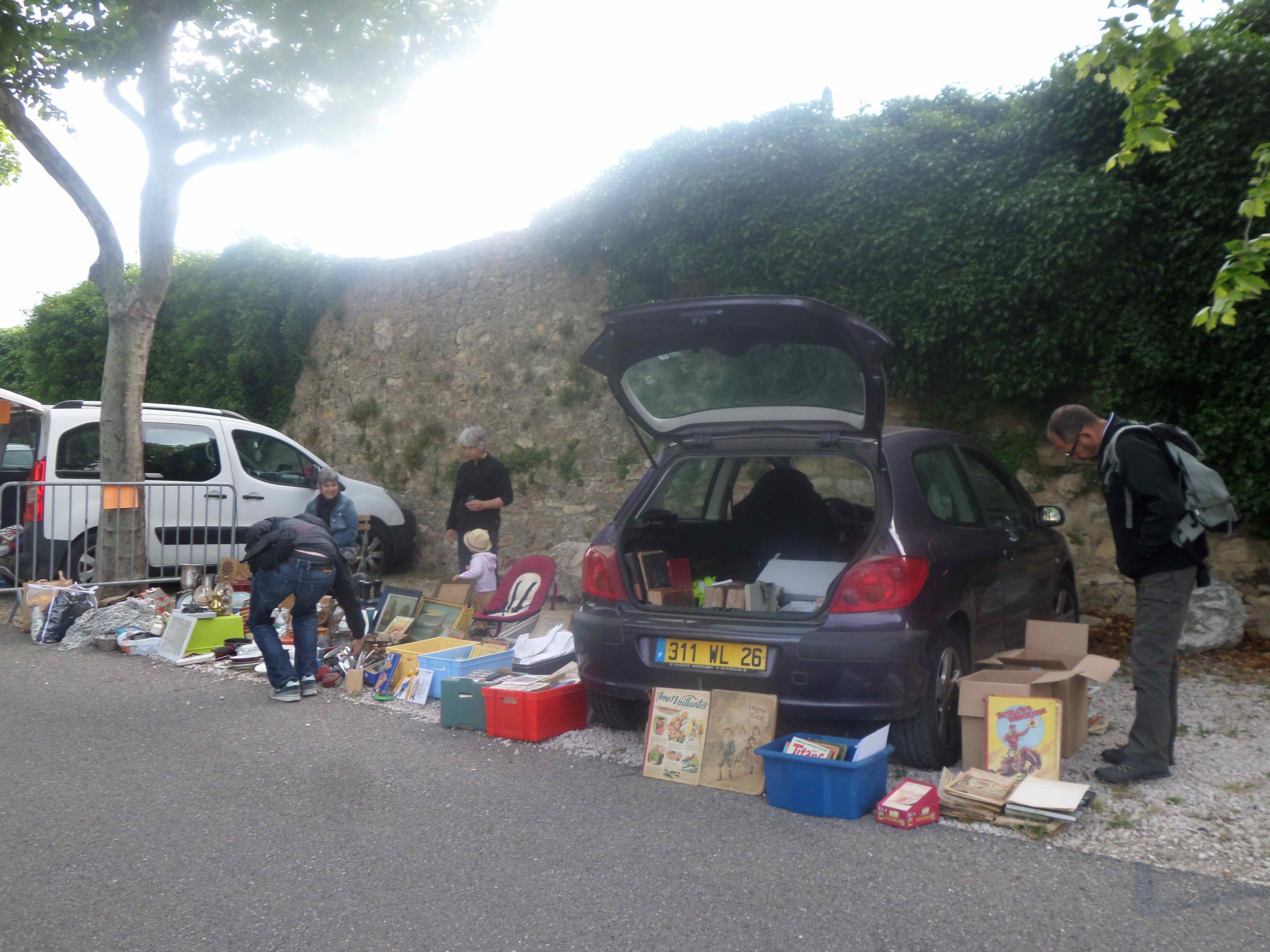 11/05/2014 Vide-greniers de Caderousse Quelques vues de notre stand au pied du mur des Gramont (monument classé)