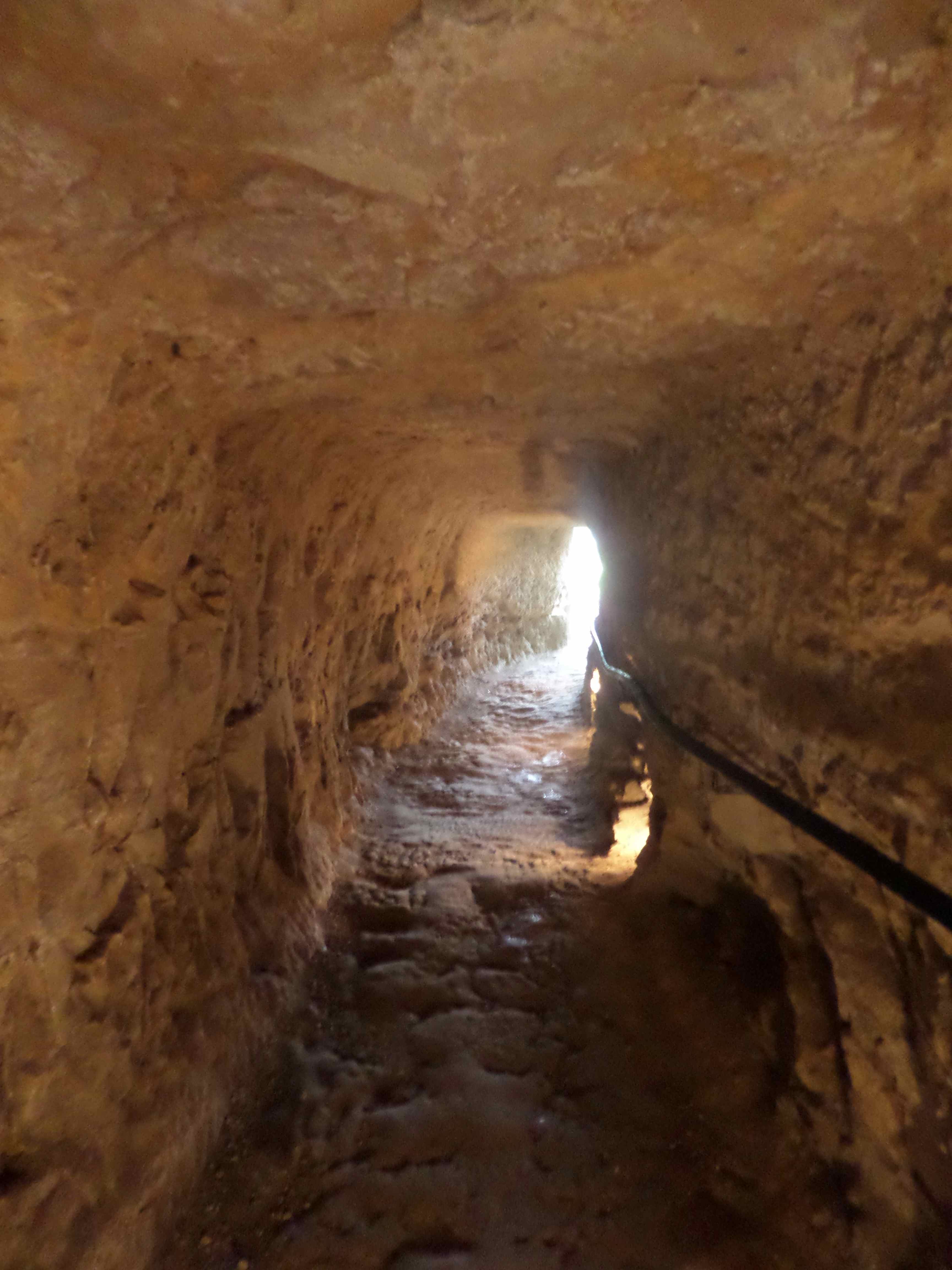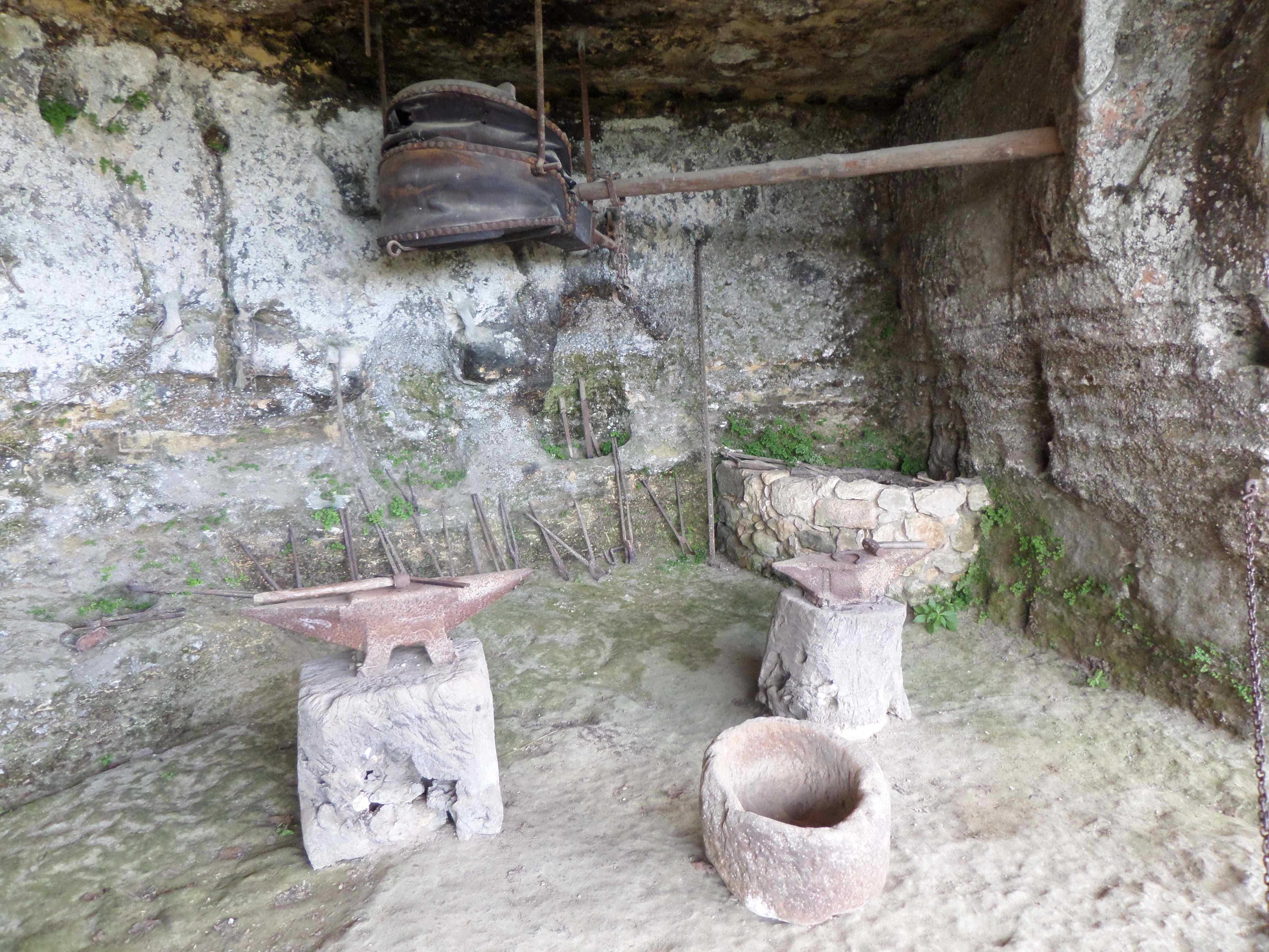 un corridor taillé dans la pierre, des systèmes pour monter des charges et la forge