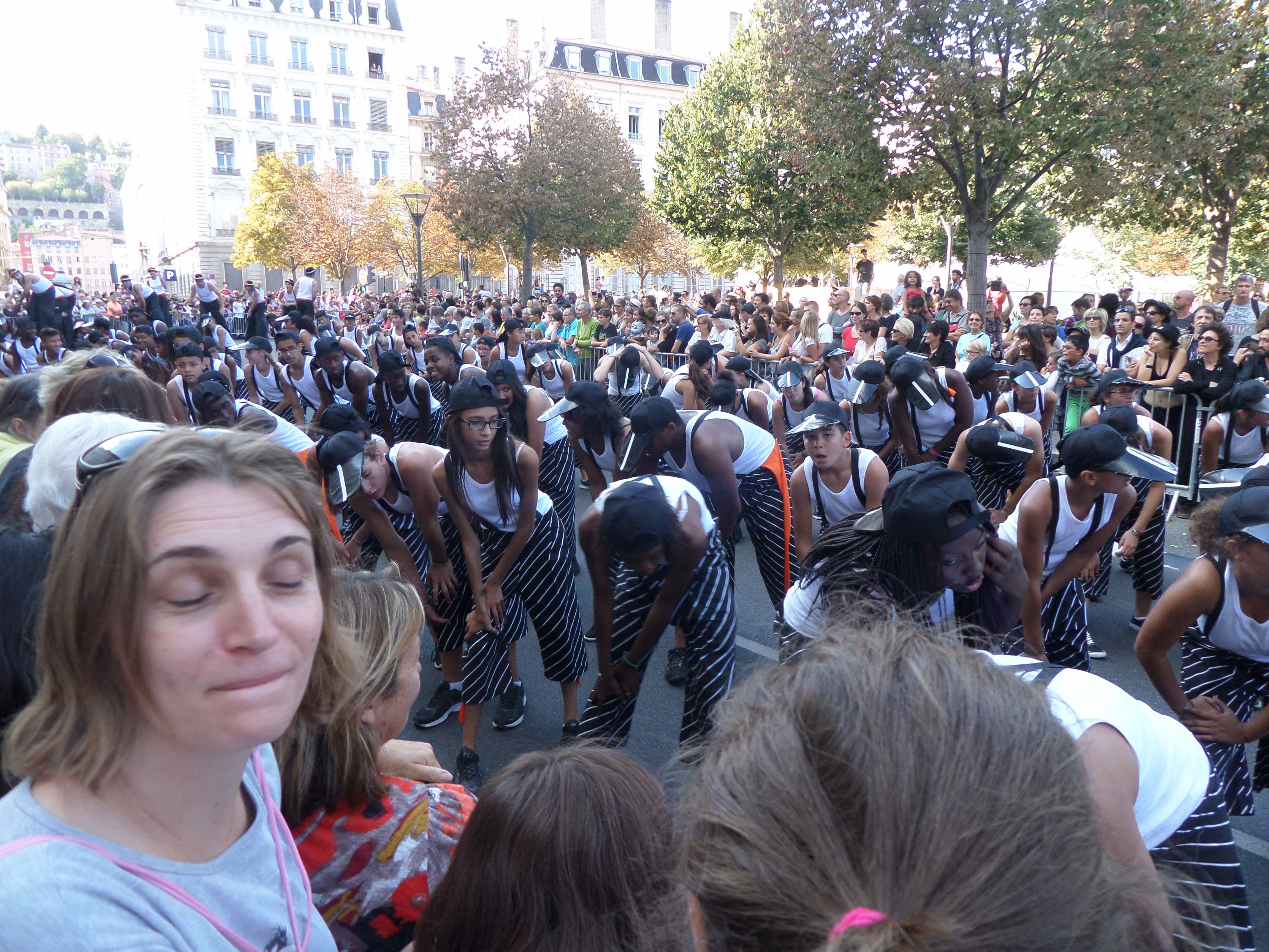 Au moment de la réception des personnalités, des lectures et chants et du PAIX géant réalisé par les élèves dans la cour.