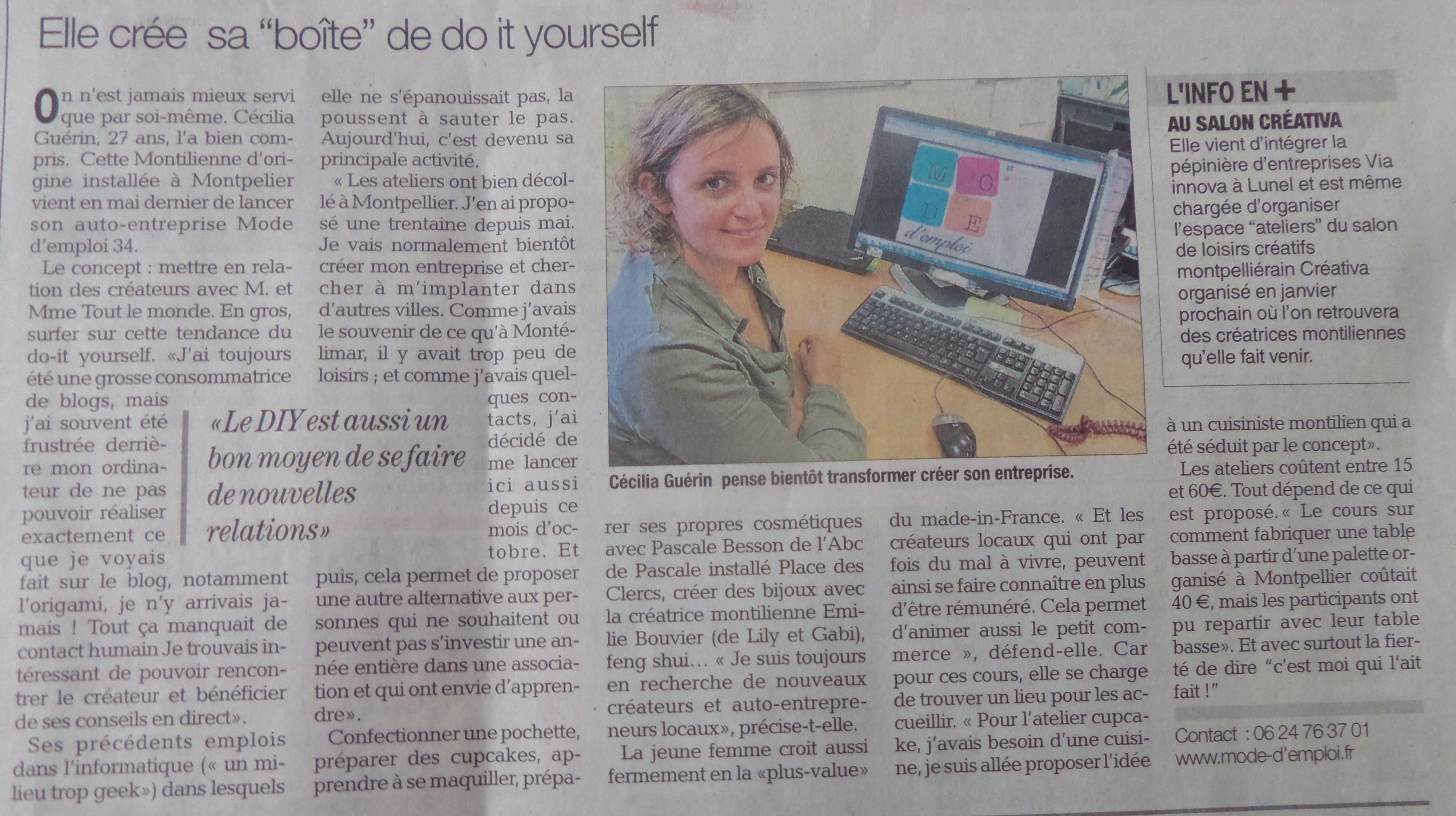 15/05/2014 La nouvelle entreprise de ma fille Cécilia… … fait le buzz sur le site d’info de Montpellier. A lire absolument… http://www.toutmontpellier.fr/montpellier-avec-mode-demploi-place-a-lechange-la-creation-et-levasion—86010.html