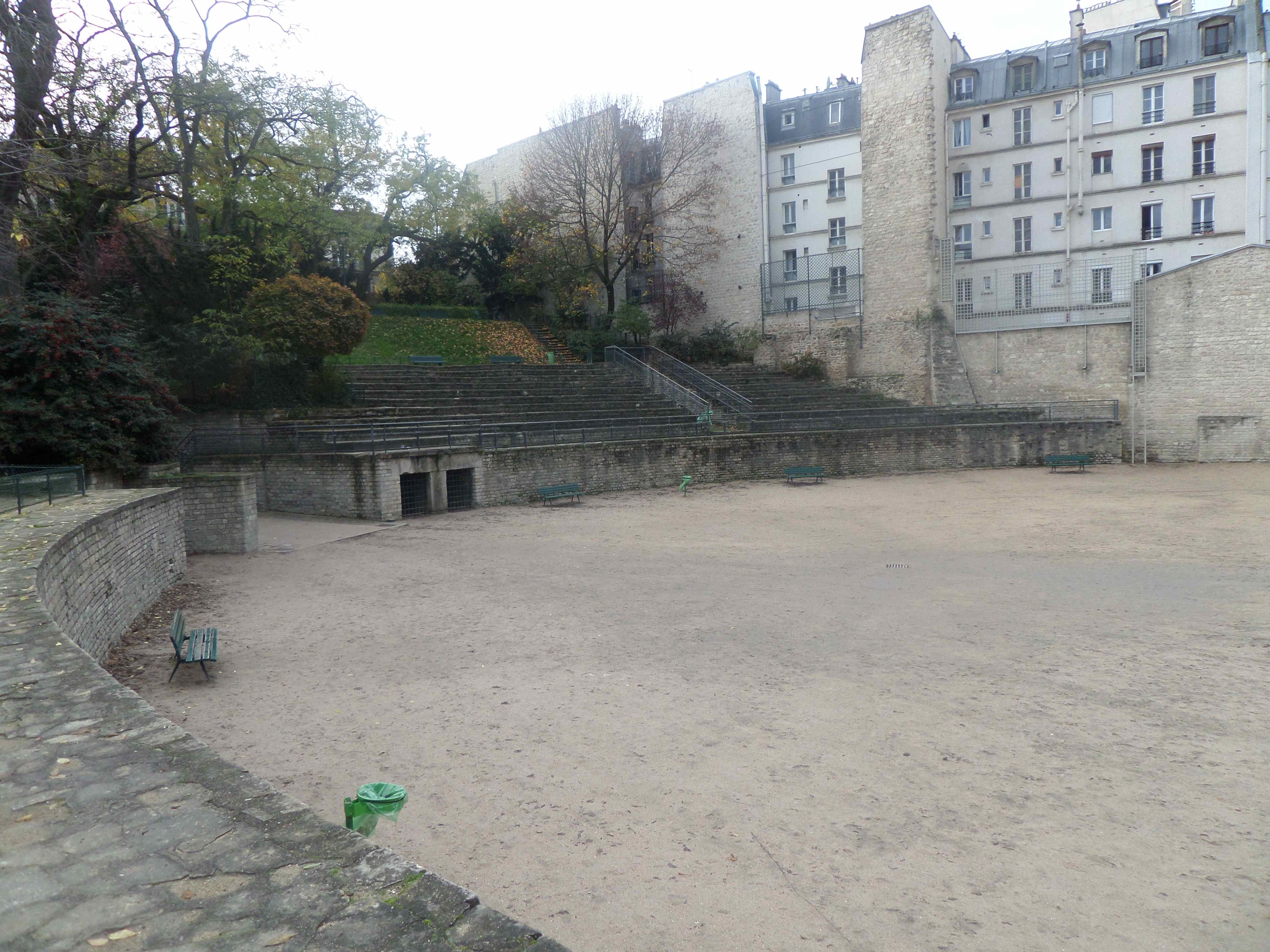la grande cour de la promenade avec le grilles de protection effondrée